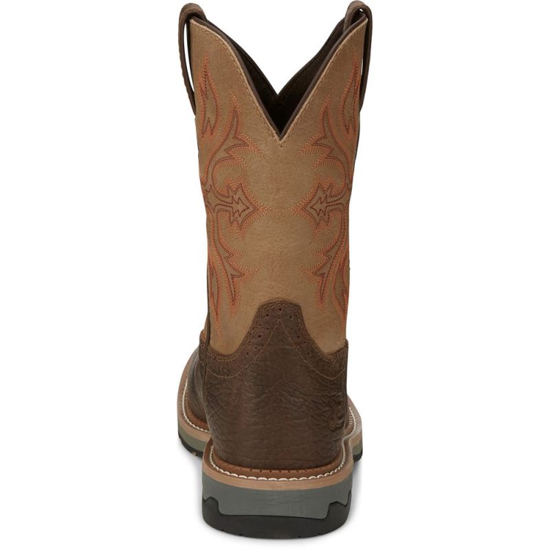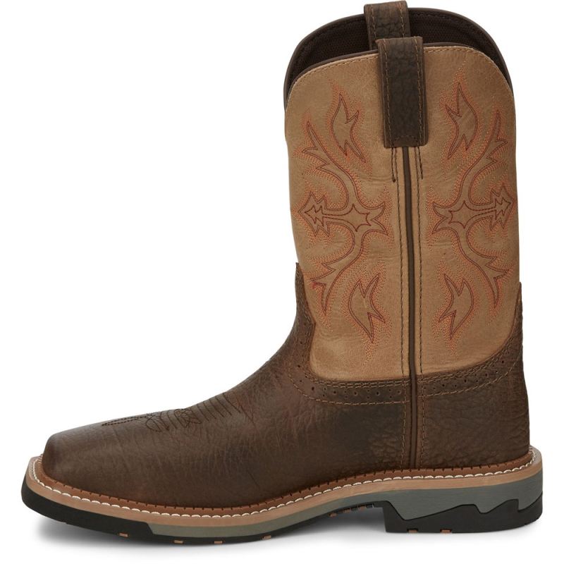 The 11" Bolt Square Composite Toe boot in Pecan from the Stampede Collection combines protection with hardworking dependability and comfort.