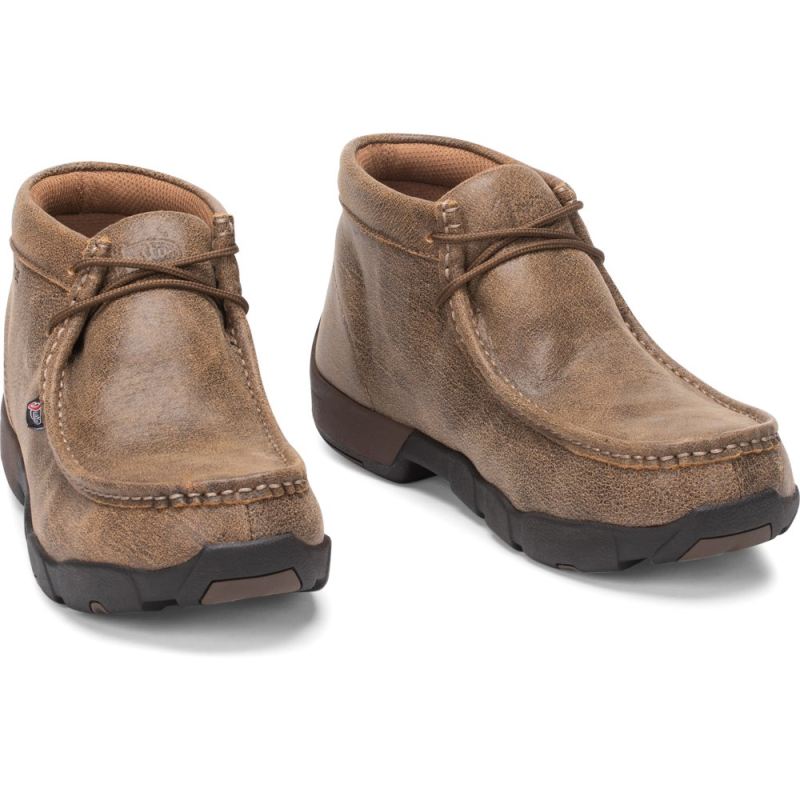 Casual and comfortable, the Cappie Tan Bomber Steel Toe men's workboot keeps things simple with a distressed golden tan leather exterior and woven polyester laces.