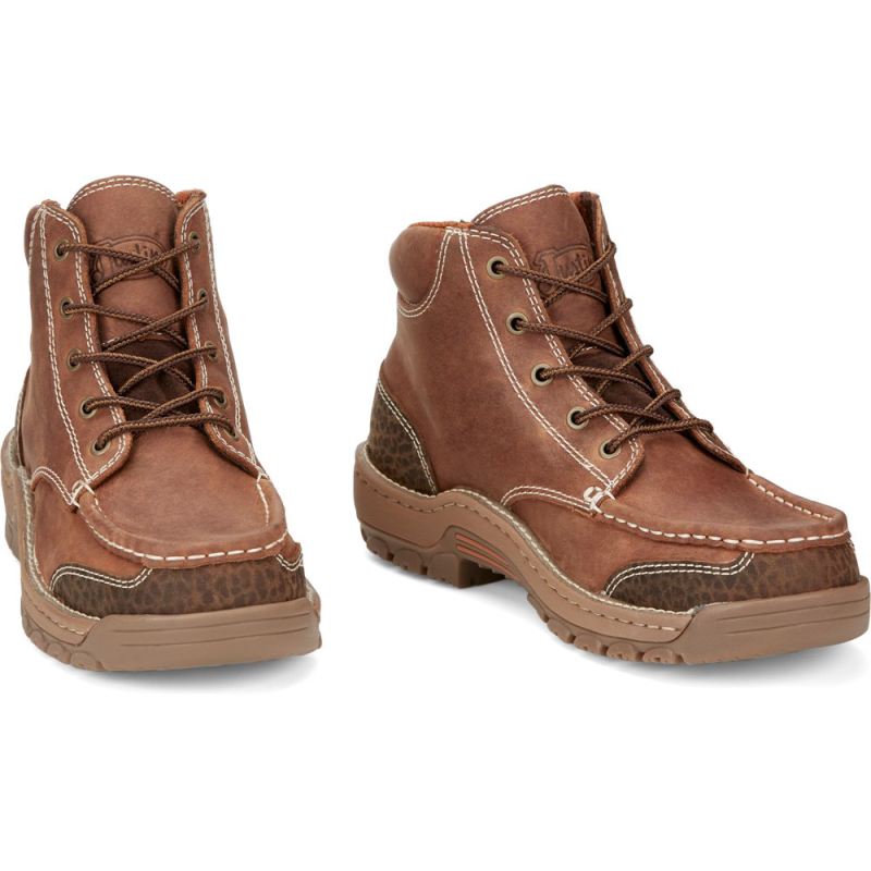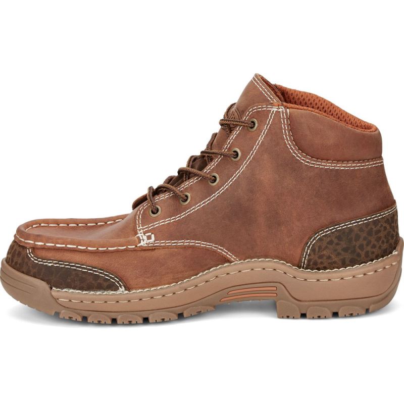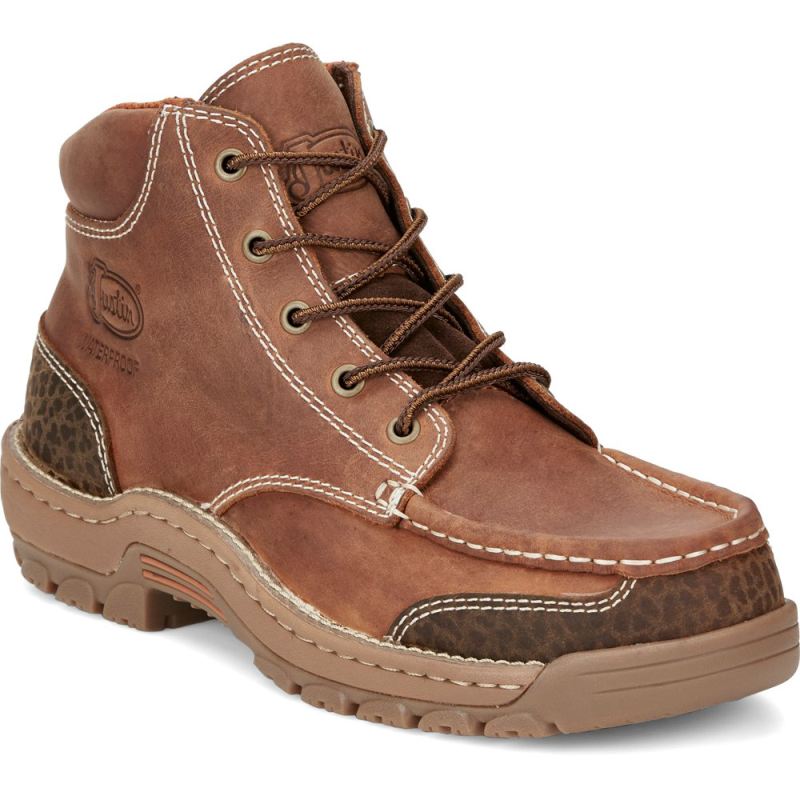 This boot delivers the on-the-job comfort and performance you need in a versatile design that's right at home off-duty too. The 5" Corbett Waterproof EH Mocc Toe boot from our Stampede Light Duty collection is powered for work on-site or in the office and ready for play in brown cowhide with contrasting printed accents. Built with waterproof construction and an oil- and slip-resisting rubber outsole, this mocc toe lace-up features a removable Ortholite" insert for cushioned comfort. It's Electrical Hazard Rated to meet ASTM F2982-11 EH standards.