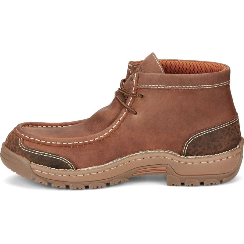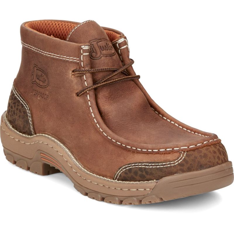 We've amped up a classic with this mocc toe work boot that's powered to perform, yet ready for play.The Crafton 4" Waterproof EH Mocc Toe boot from our Stampede Light Duty collection is crafted from barley brown cowhide with printed accents for a subtle edge. Featuring waterproof construction, slip- and oil-resisting rubber outsoles and removable Ortholite" inserts for cushioned comfort, these boots will bring you from the jobsite or office to after-hours downtime with ease. They are Electrical Hazard Rated to meet ASTM F2982-11 EH standards.