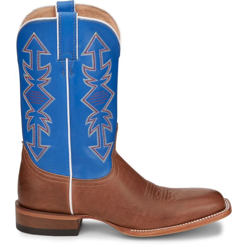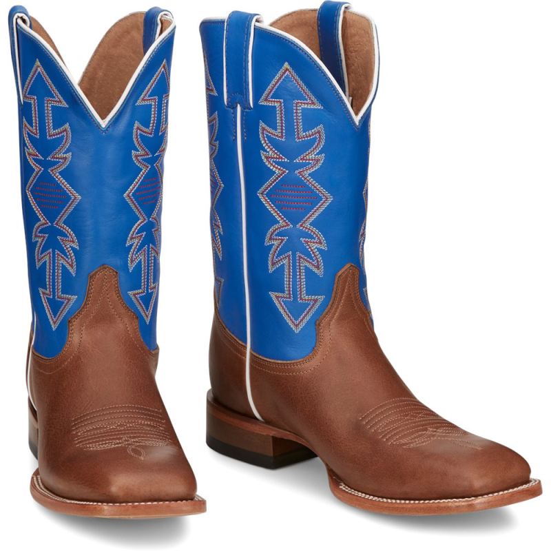 Designed to stand up to the rigors of ranch life, these jewel blue and buckskin tan boots are as bold as you.