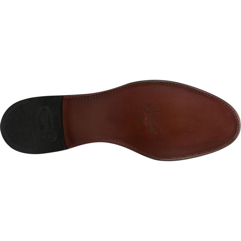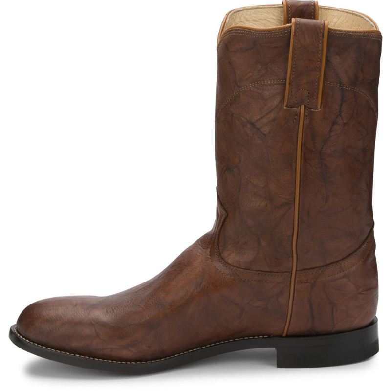 The Jackson Chestnut 10" tall Men's roper boot is a refined classic. It's slightly distressed marbled texture creates a lived-in look and the beige seam along the quarters and collar trim are subtle details that set this boot apart. Its round toe and unit heel provide a relaxed fit in and out of the stirrup and the cushioned insole supports the foot for lasting comfort. The J-Flex Flexible Comfort System" insoles keep things comfortable with leather-covered cushioned insole and triple density insole board.