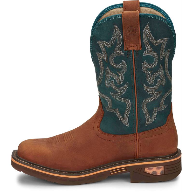 This 11" Composite Toe boot in Russet and Turkish Blue leather is crafted with high-tech innovation from the inside out. Built on our new lightweight UltraHex platform, it features an Ortholite" insert for comfort and breathability and a strong shock-absorbing honeycomb midsole to reduce foot fatigue during a long day's work. It's equipped with our nano composite toe - our strongest, most lightweight safety toe that's designed with added toe room. On the ground, the abrasion-resisting, slip-resisting and oil-resisting outsole delivers exceptional durability with long-lasting wear. This boot is electrical hazard rated and features a non-metallic shank.