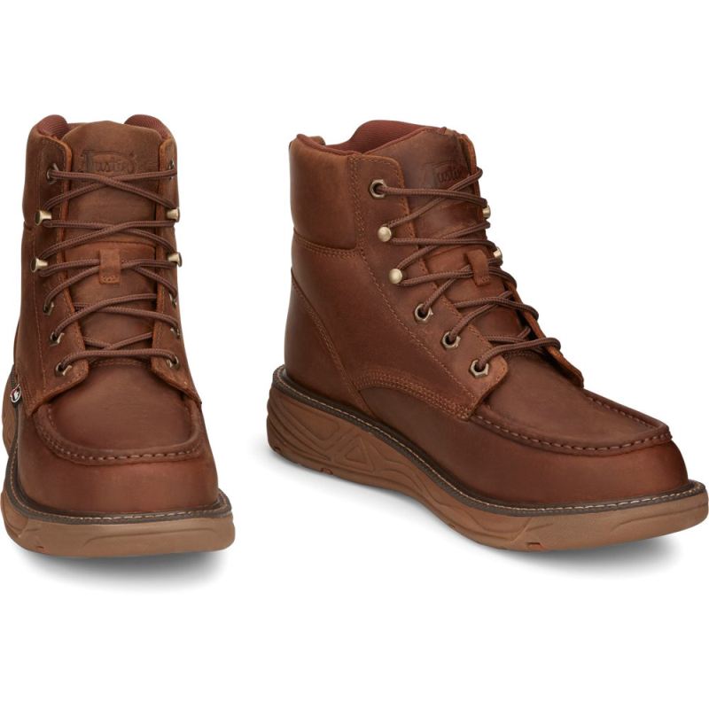 Durable and waterproof with a flexible athletic construction, the versatile Stampede Rush 6" Waterproof Mocc Toe is the perfect boot for the workday and beyond.