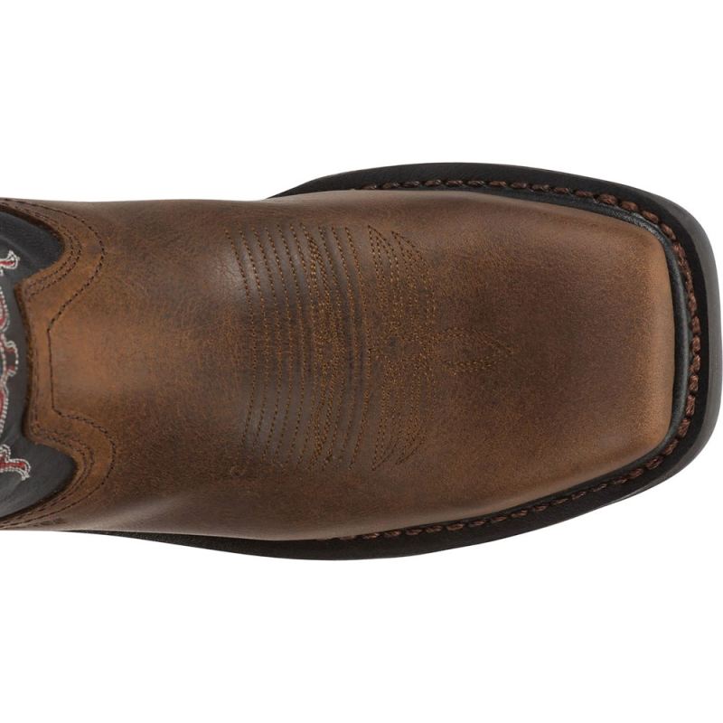 The Tanker Brown Steel Toe workboot has traditional cowboy boot qualities yet practical details for the work field.
