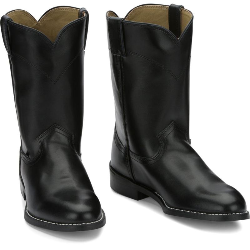 Its polished black exterior is simple yet gives this boot a sophisticated touch. The wide round toe and unit heel provide a relaxed fit and the cushioned insole supports the foot for lasting comfort in or out of the saddle.
