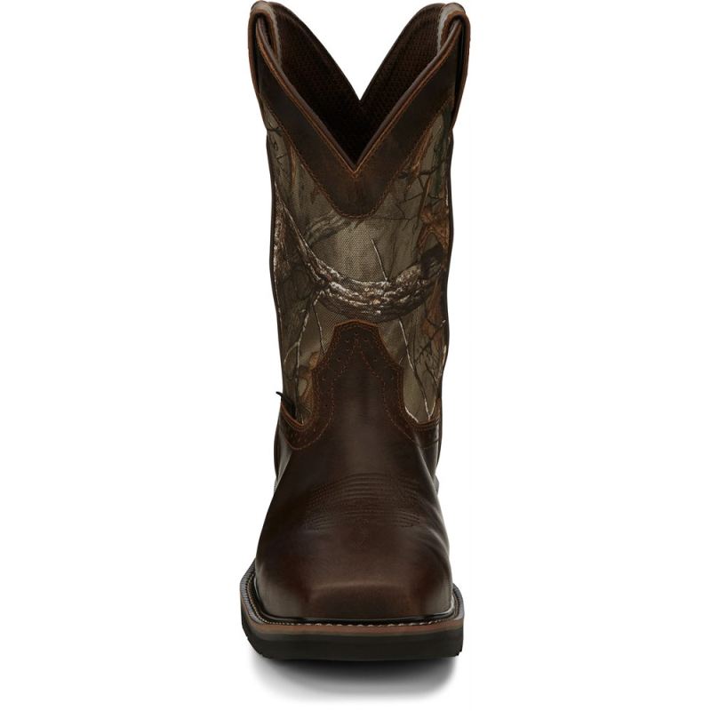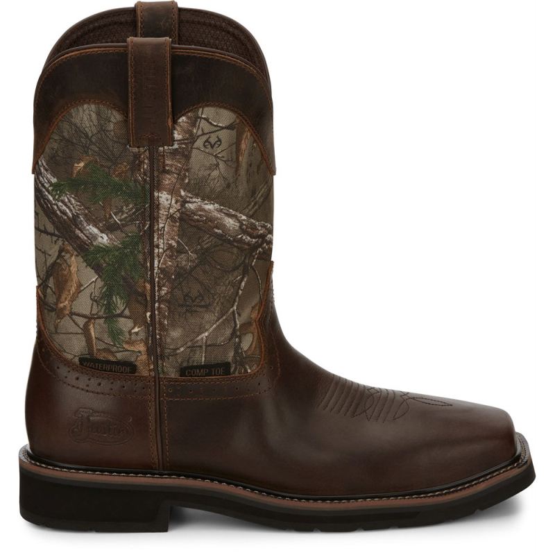 The RealTree" Mini X-Tra camo upper is paired with a polished brown leather vamp and collar. It features a waterproof exterior for added protection when up against the outdoor elements and a composition square toe for armor-like protection of your metatarsals that meets safety standards without weighing you down. The J-Flex Flexible Comfort System" insole cushions and supports your foot guaranteeing lasting comfort and meets ASTM F2413-11, I75, C75 EH safety footwear standards.