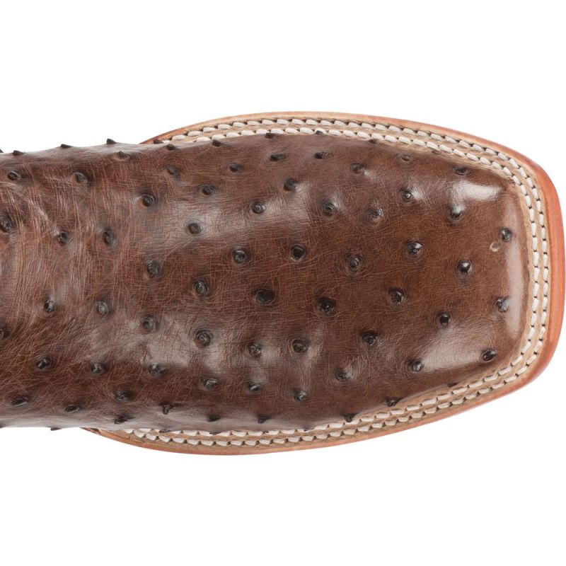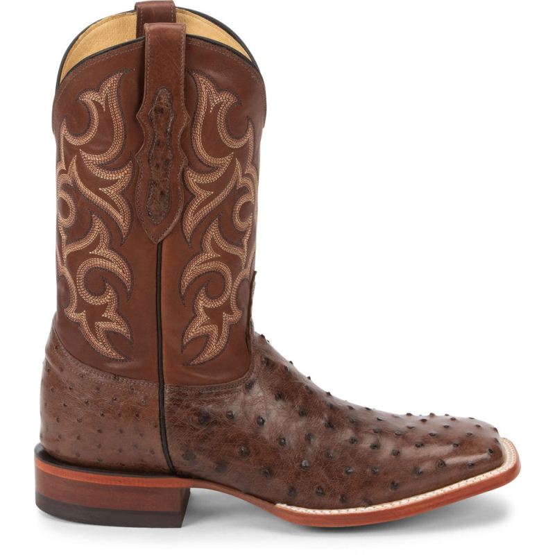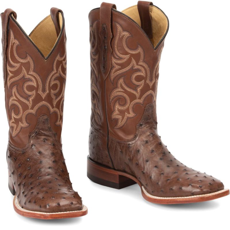 Featuring a rich mahogany leather upper with a golden tan stitch pattern and full quill ostrich foot, this boot is both lush and distinguished. Its made for comfort with a broad square toe and J-Flex Flexible Comfort System" insoles for added support.