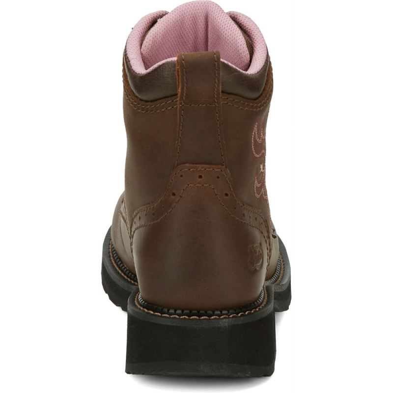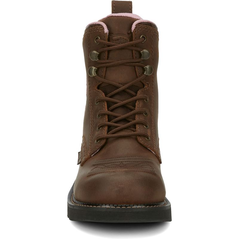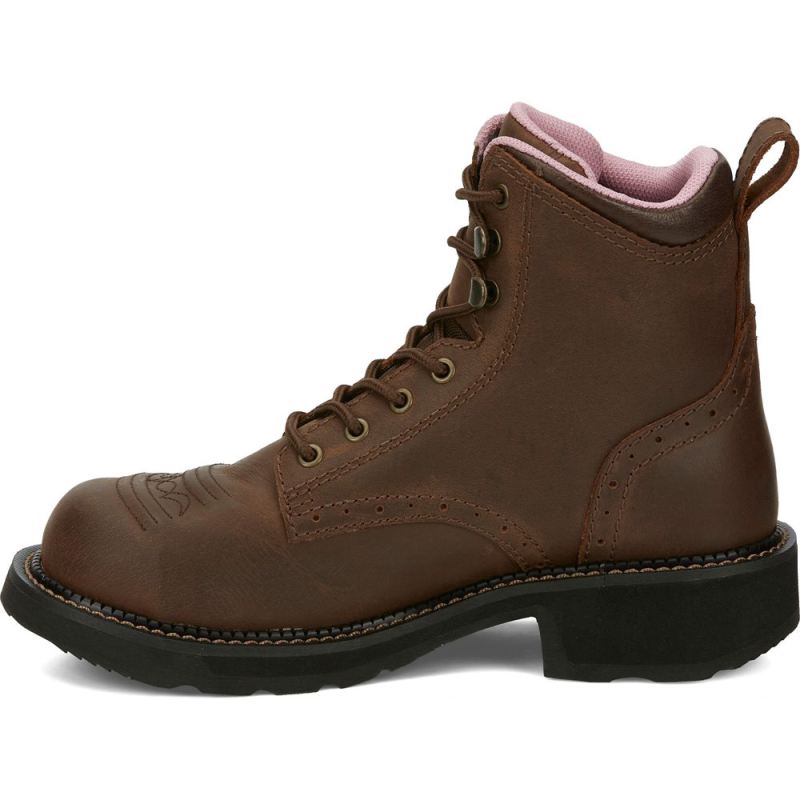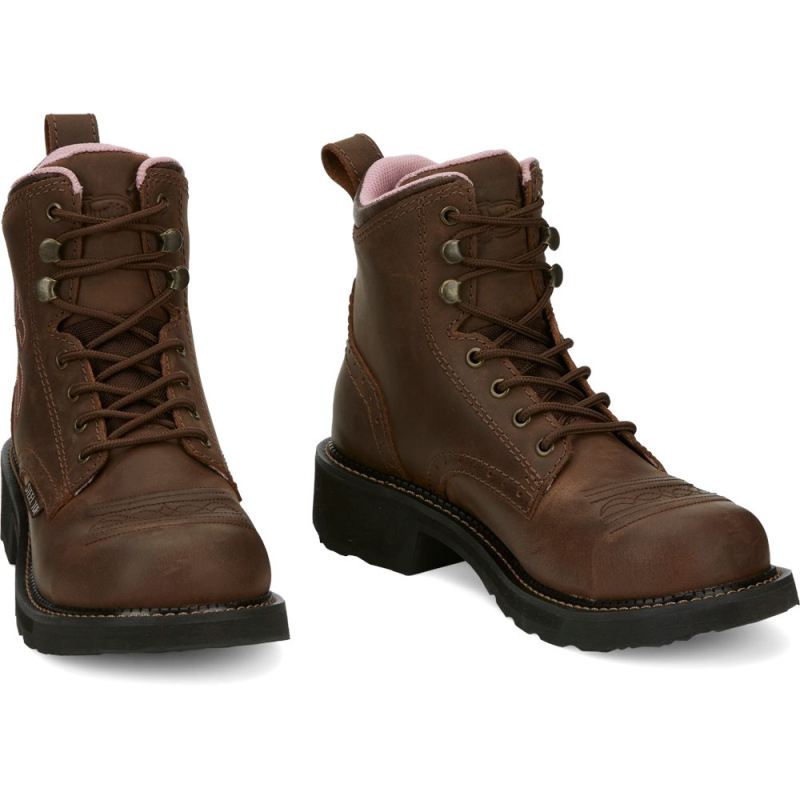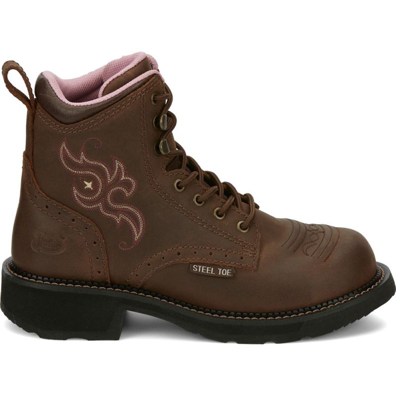 Girly and tough, the Katerina Lace Up Steel Toe 6" tall Women's Justin Gypsy work boot is ready for the job.