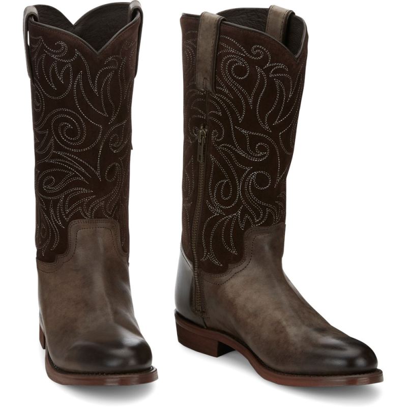 The Anthem's unique design comes together in perfect harmony, set off with a beautifully embellished contrast stitch shaft. It features a cushioned insole inside for your comfort. The 1 1/8" roper underslung heel is great for walking and keeping hold in the stirrups, and the side zipper provides added ease. A Reba by Justin" Exclusive.
