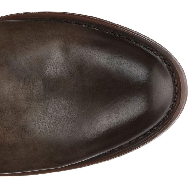 This gorgeous boot makes a striking impression in burnished leather and embroidered suede.