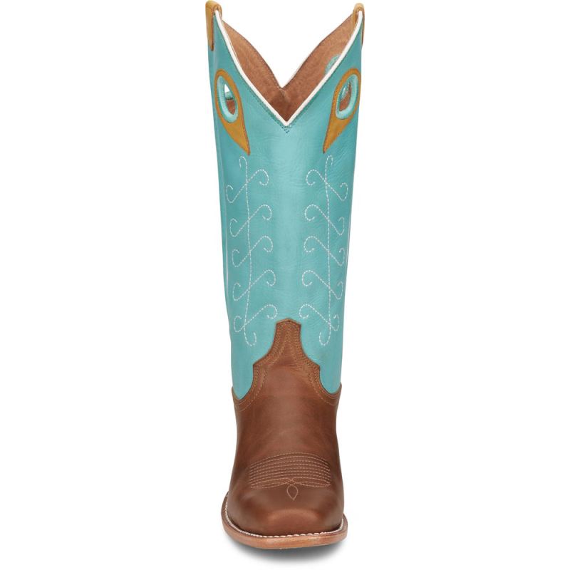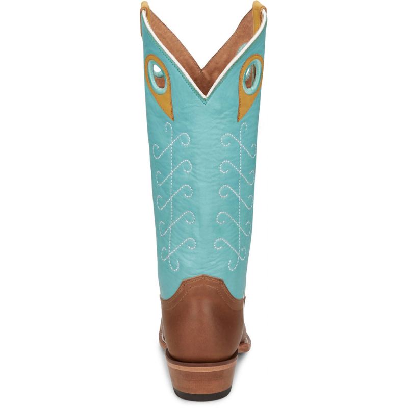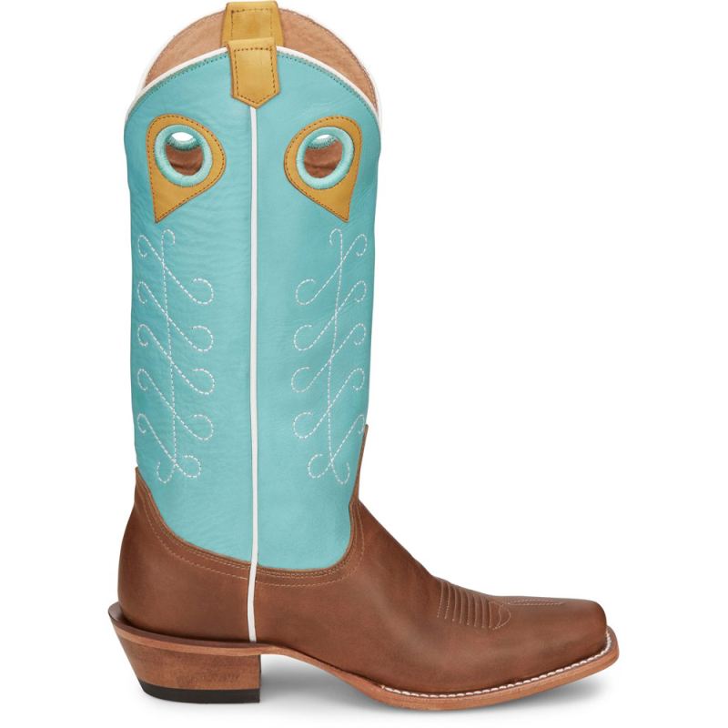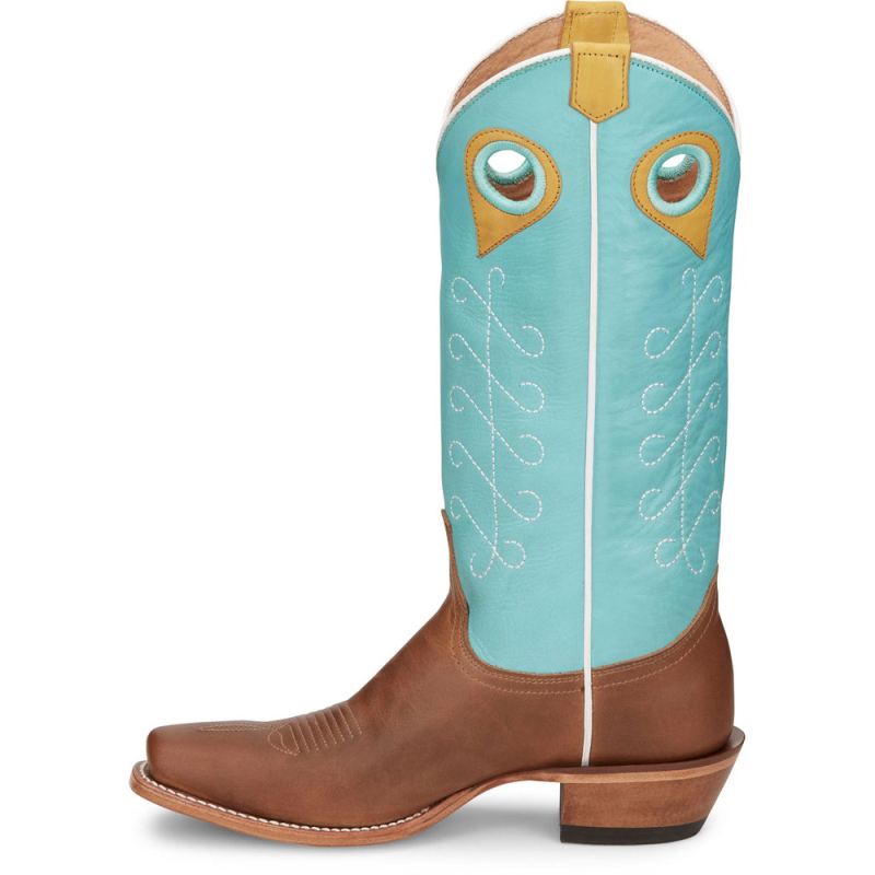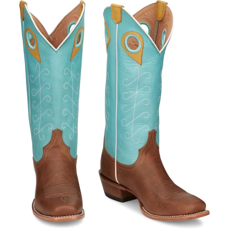 You always get the job done, but you appreciate getting it done with your own stylish flair. Amber pull holes and straps accent the beautiful sky blue cowhide upper to complement the saddle tan cowhide vamp. This vintage-inspired boot is both functional and comfortable. It features a cowgirl underslung heel, a medium square toe, and the J-Flex" Comfort System. Our Punchy collection is crafted of durable leathers that are as tough as the women who put them to the test every day.