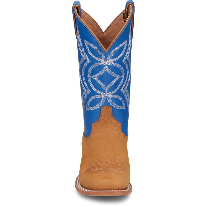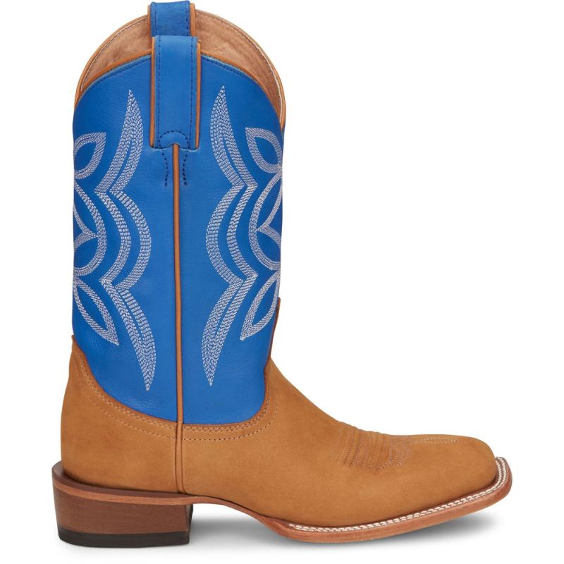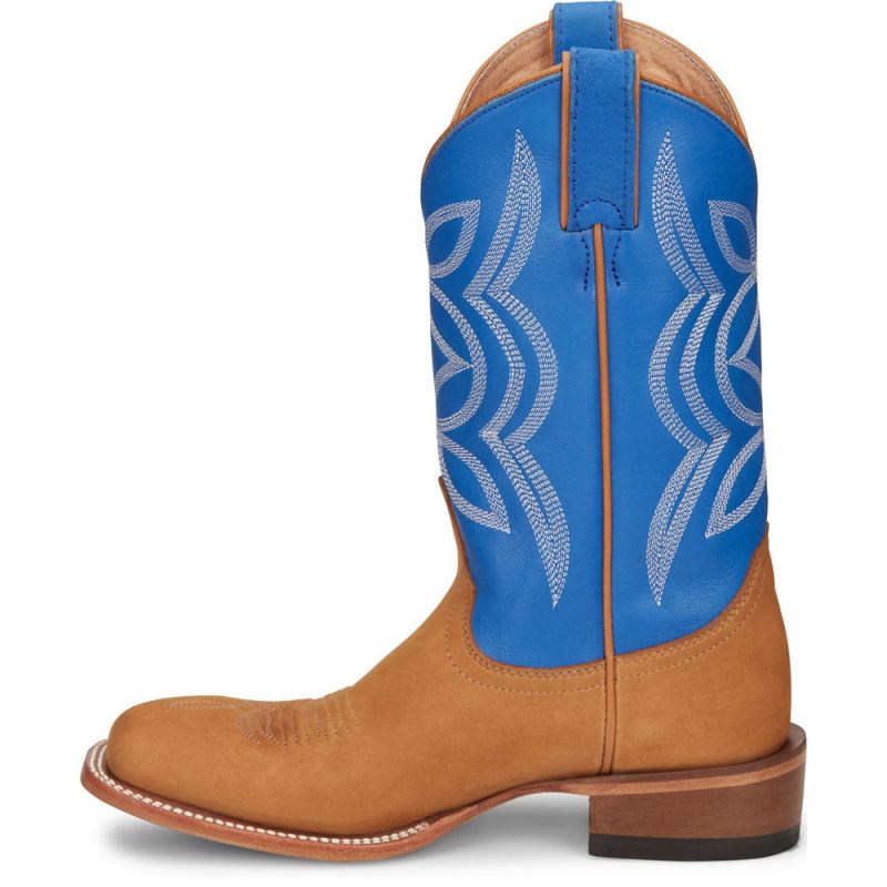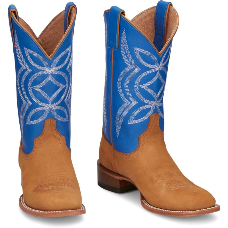 Designed to stand up to the rigors of ranch life, these jewel blue and tan boots are as classic as you.