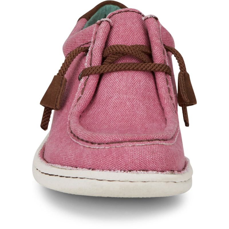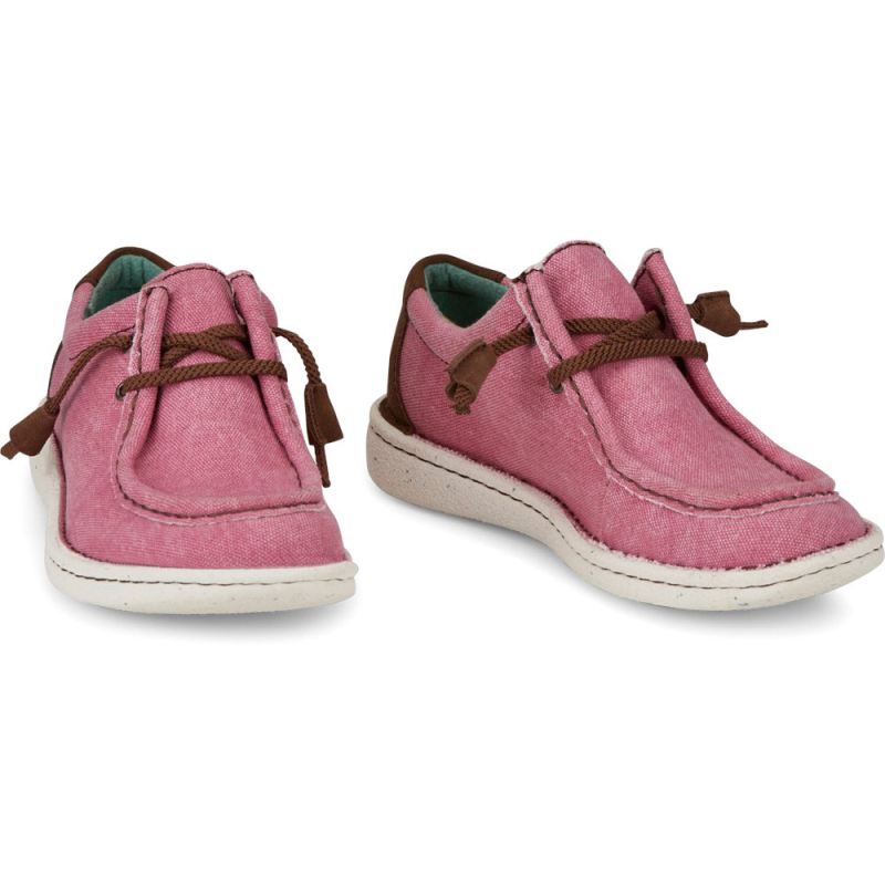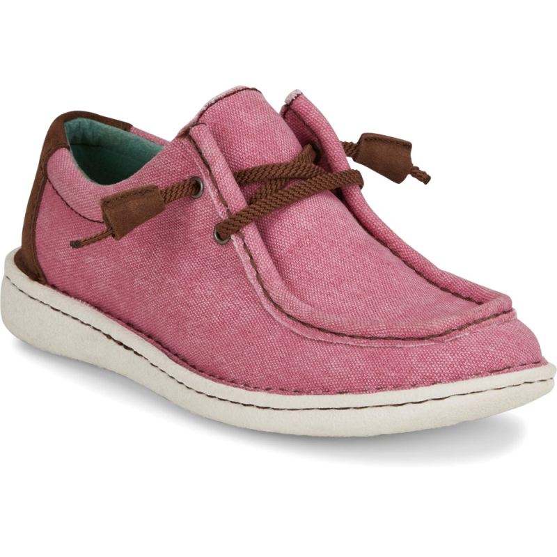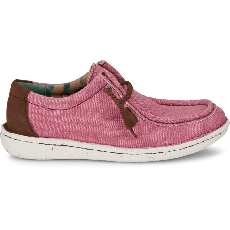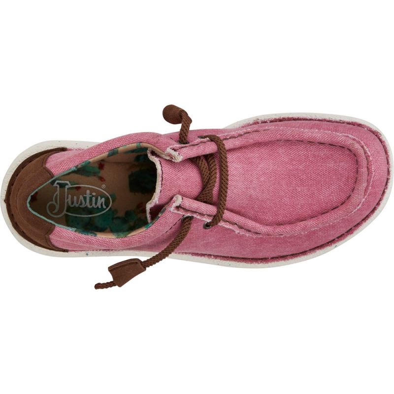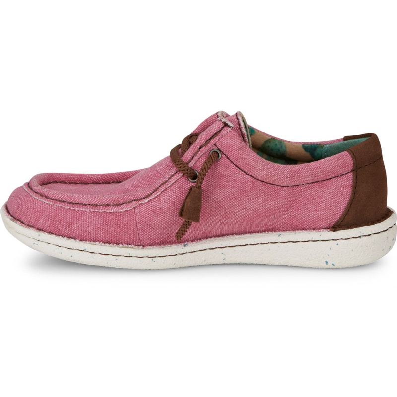 The women's Hazer in pink from the Justin Casuals collection features laid-back moc-toe styling with a cushioned insole.