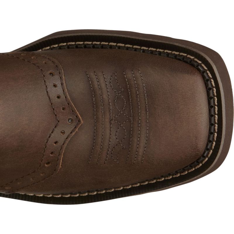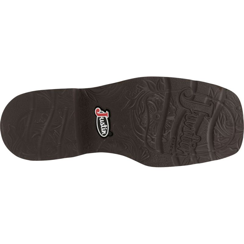 Its casual and comfortable with a distressed hazel brown leather exterior accented by a green, coral, and cream stitch pattern and perforated saddle foot. Features such as the square toe and J-Flex Flexible Comfort System" insole with removable orthotic inserts keep this boot functional and comfortable. You're guaranteed cushion and support whether working, riding, or playing.