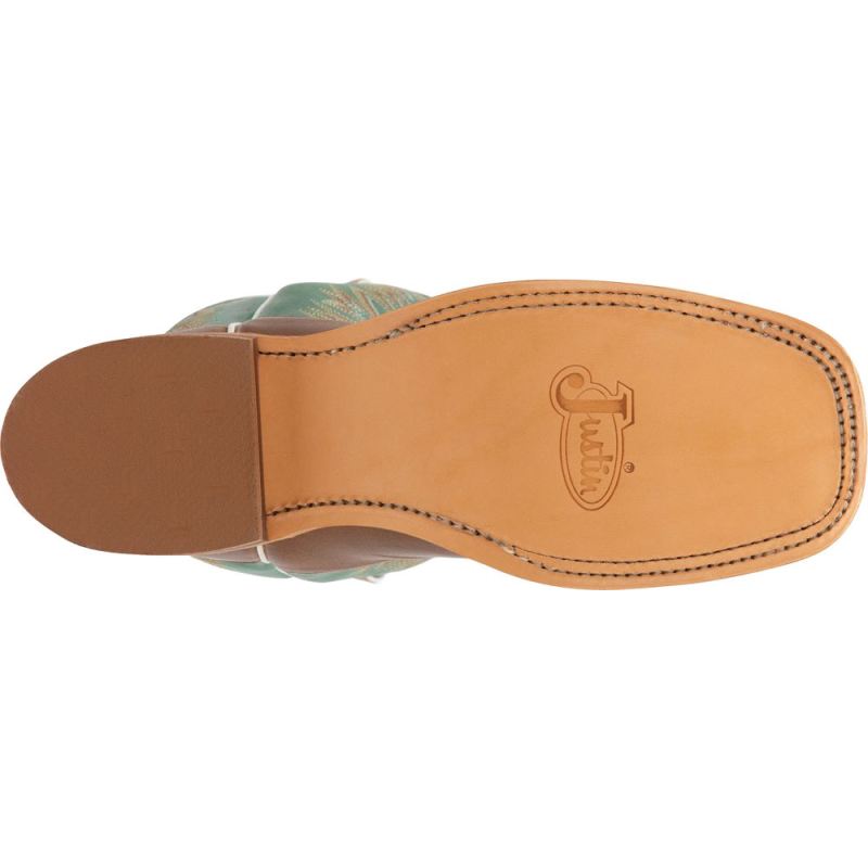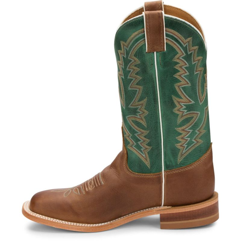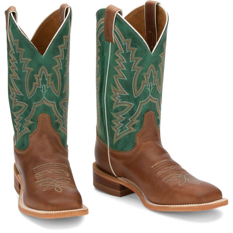 The emerald calfskin upper is an ornate backdrop to the striking gold stitch pattern and compliments the burnished tan foot. Its square toe, standard heel and J-Flex Flexible Comfort System" insoles allow for a relaxed and comfortable fit.