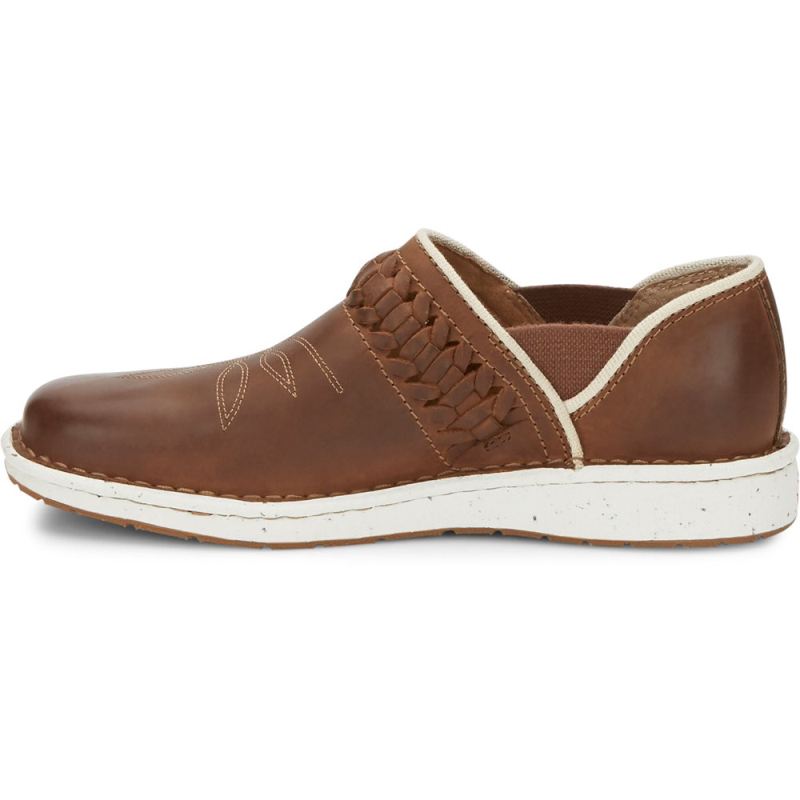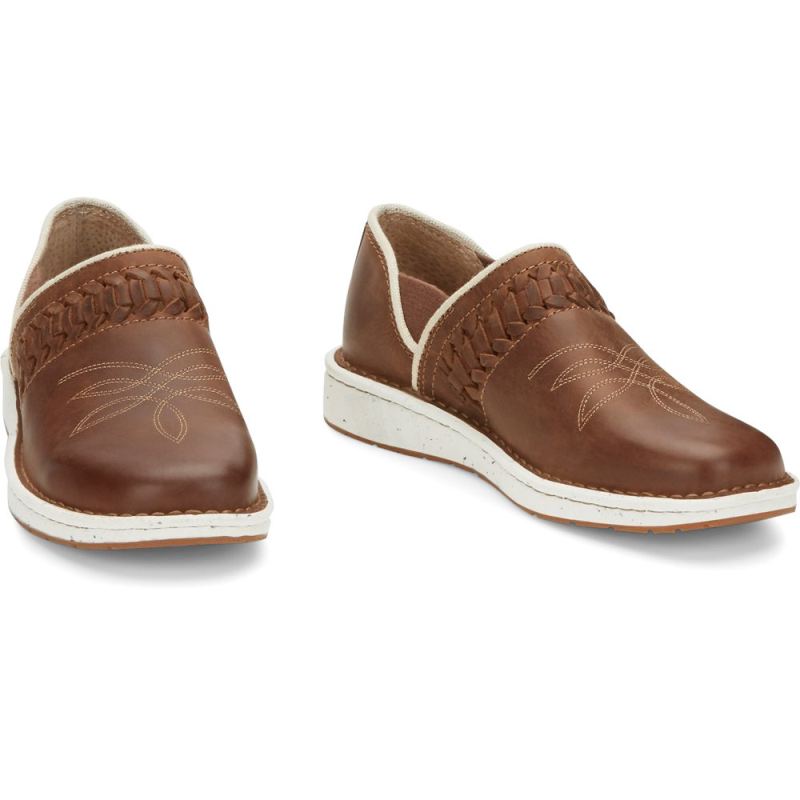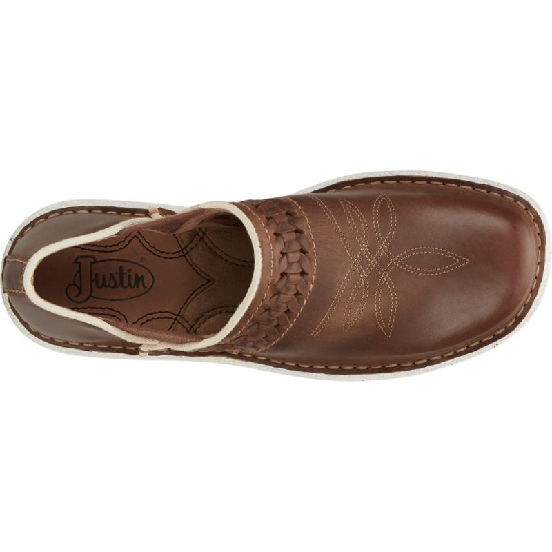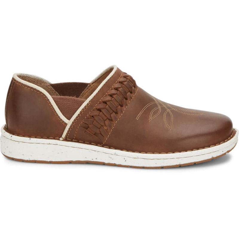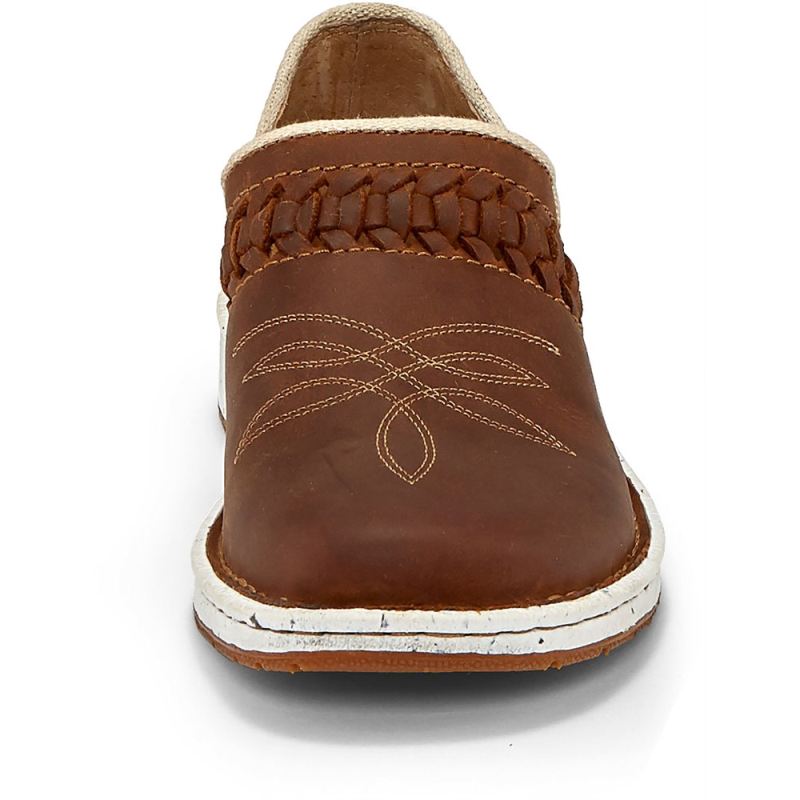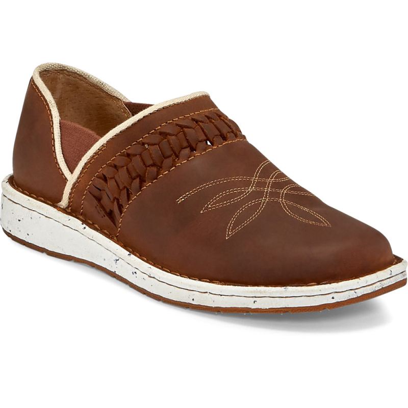 Distinctive flair and cozy comfort come together in the Poly slip on in Walnut from the Justin Casuals collection.