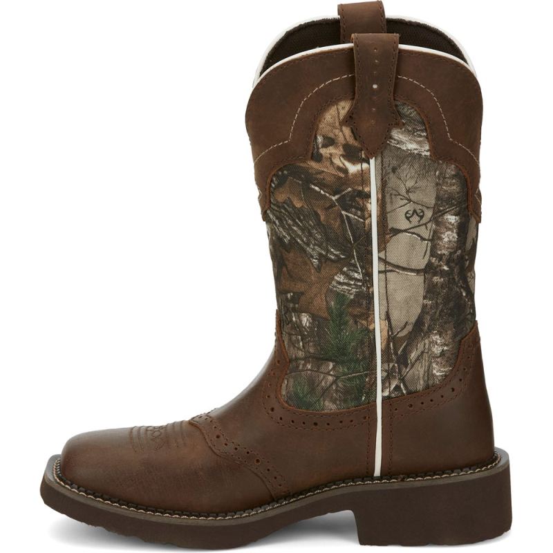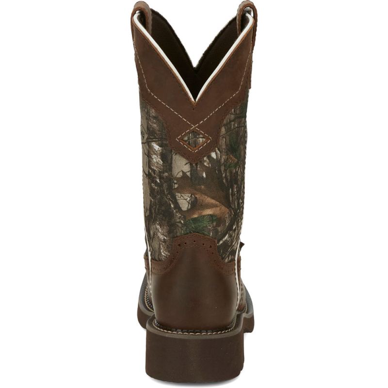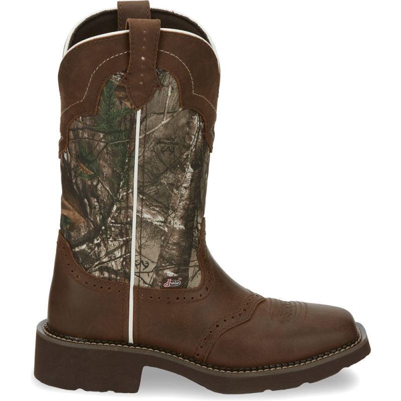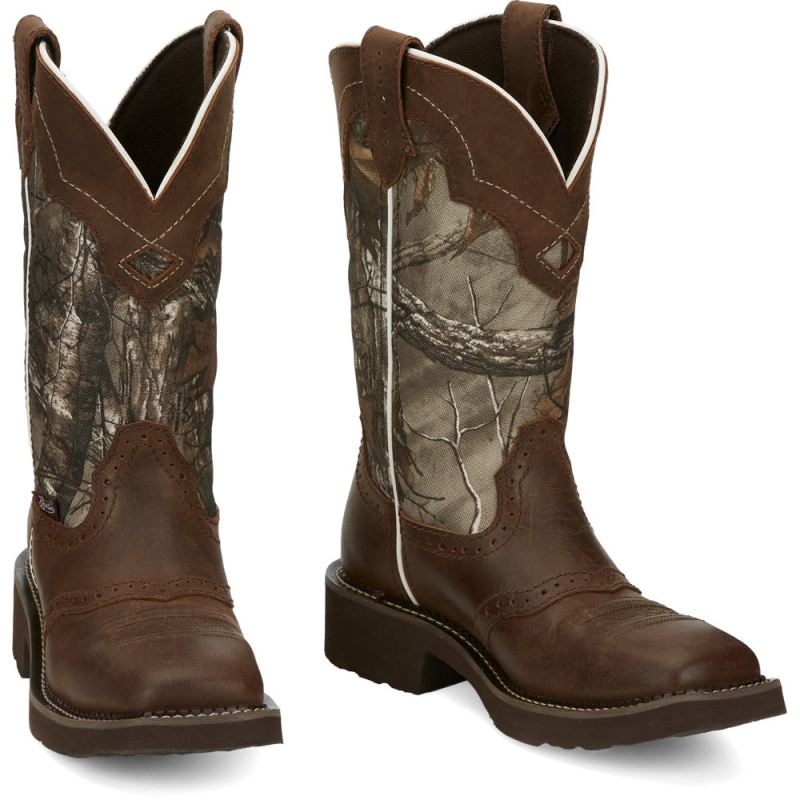 Hunt in style in the 12-inch tall Raya Camo Justin Gypsy Women's brown cowboy boot.