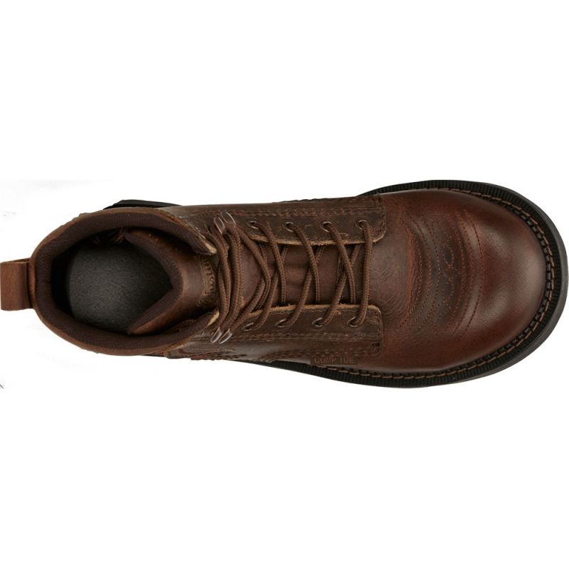 From the Gypsy" Work collection, the 6" Reamy Round Nano Composite Toe lace-up boot is equipped our new J-Vent Technology with breathable high-abrasion athletic mesh that creates airflow channels to keep your feet and legs cool and dry. The nano composite toe and oil- and slip-resisting rubber outsole will help you take on any working conditions with confidence. Inside, the J Flex Comfort System" with removable orthotic insert delivers enduring support. This boot is Electrical Hazard Rated.