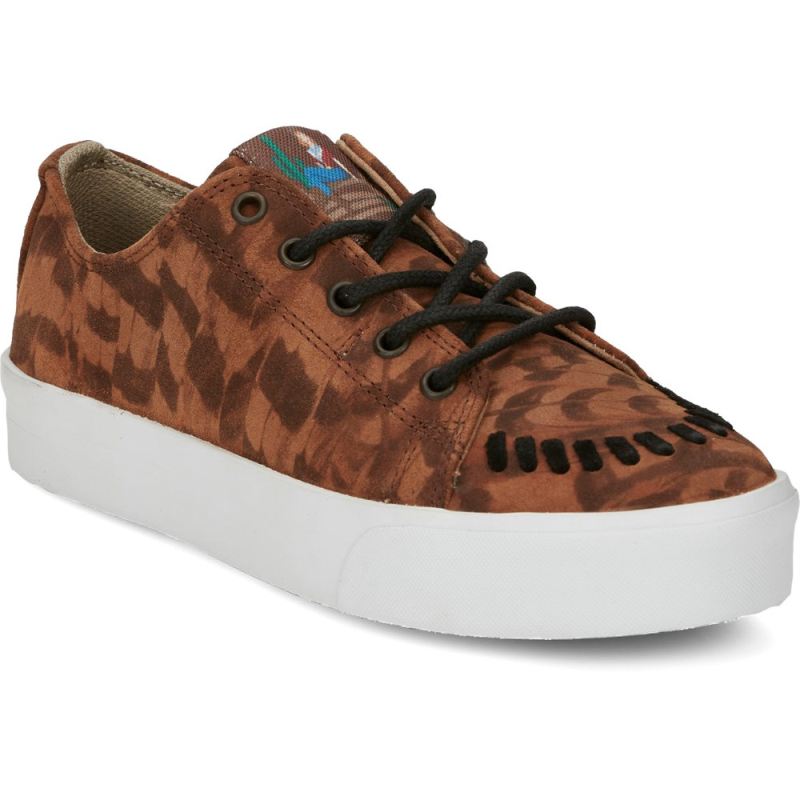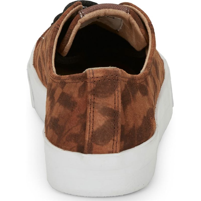 Ultra-cozy and wrapped in a new windswept feather print suede design, the Susie 2.0 sneaker gets a boost from its sporty rubber sole and cool-moccasin-inspired whipstitching. A retro drawing of Cowgirl Reba, sittin' on a fence, brings a touch of added whimsy. Inside, the cushioned insole provides comfortable support. A Reba by Justin" Exclusive.