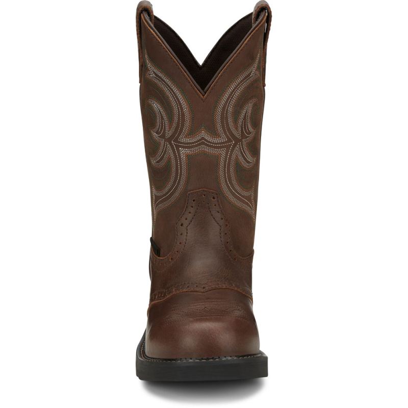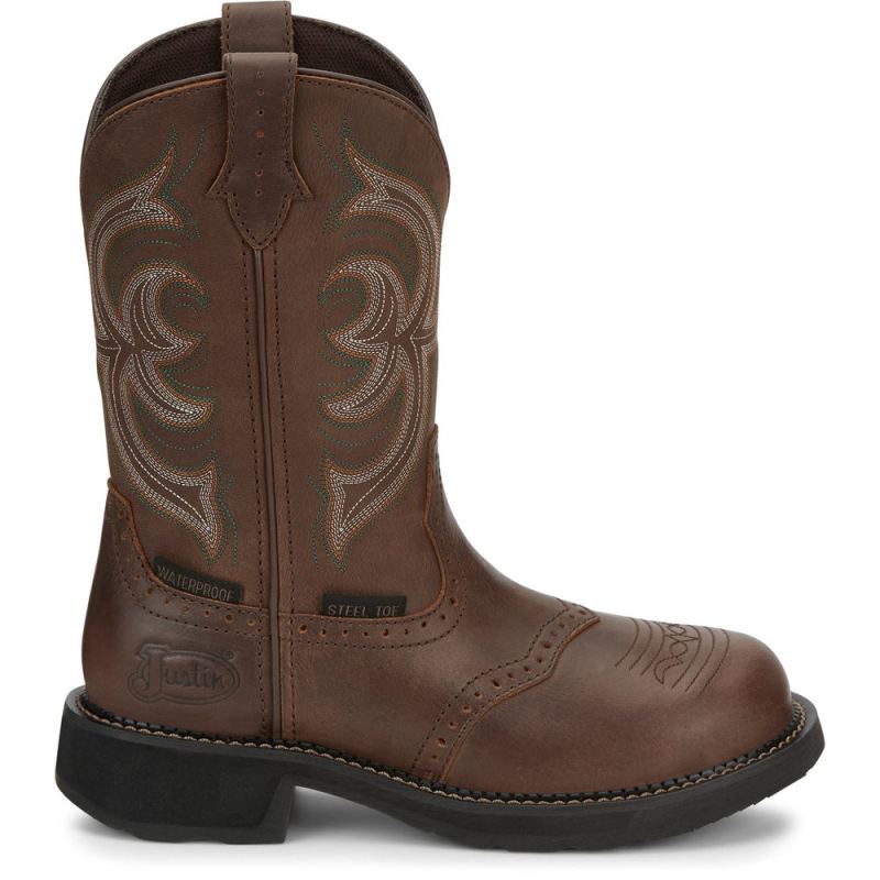 The Wanette Brown Steel Toe is an 11" tall women's Justin Gypsy work boot with a steel toe that exceeds ASTM F2413-11, 175, C75 safety standards and has J-Flex Comfort System" insoles.
