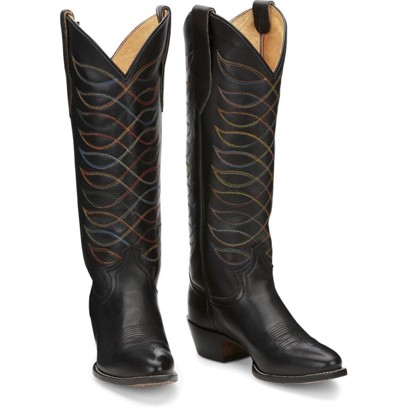 The gorgeous 15" Whitley in Midnight Black from our Vintage collection features beautiful vibrant multi-color embroidery on rich black leather. It's modeled after one of our most iconic designs from the 1970s and 1980s and looks just as fresh and striking today. Featuring a medium round toe, cowgirl underslung heel and our J-Flex Comfort System" insole for feel-good comfort and support.This beautiful throwback style celebrates our rich bootmaking heritage and will make a stunning foundation for any look.