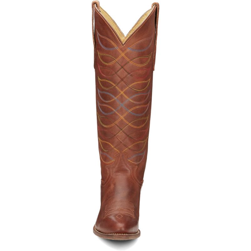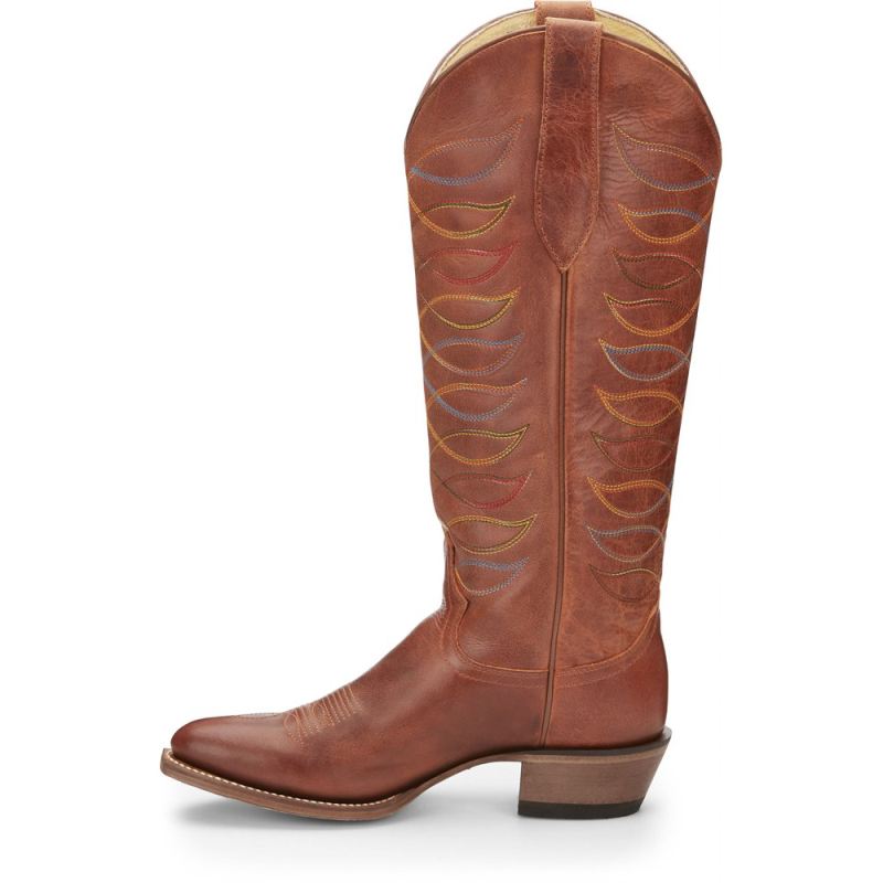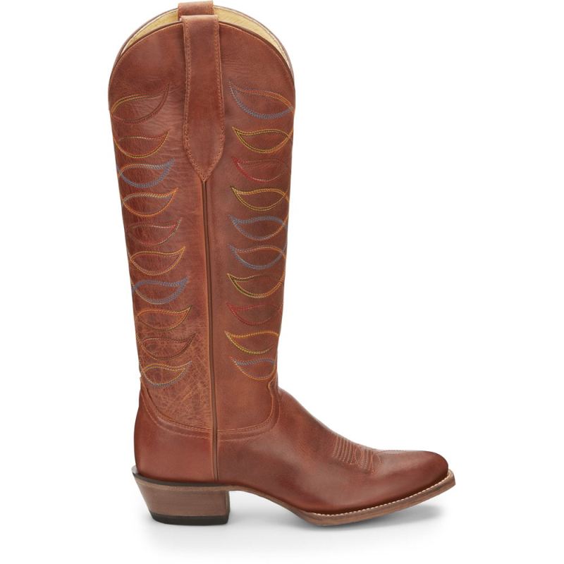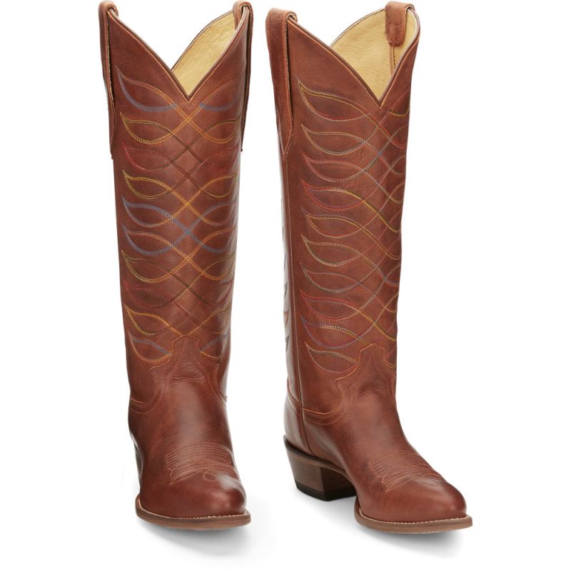 Inspired by some of our favorite 1970s and 80s styles from the Justin archives, the gorgeous 15" Whitley boot from our Vintage collection features beautiful rustic amber leather that's embroidered with vibrant multi-color threads. It's designed with a medium round toe, a cowgirl underslung heel and features our J-Flex Comfort System" insole for feel-good comfort and support.This striking throwback style celebrates our rich bootmaking heritage and will make a stunning foundation for any look.