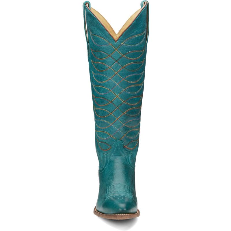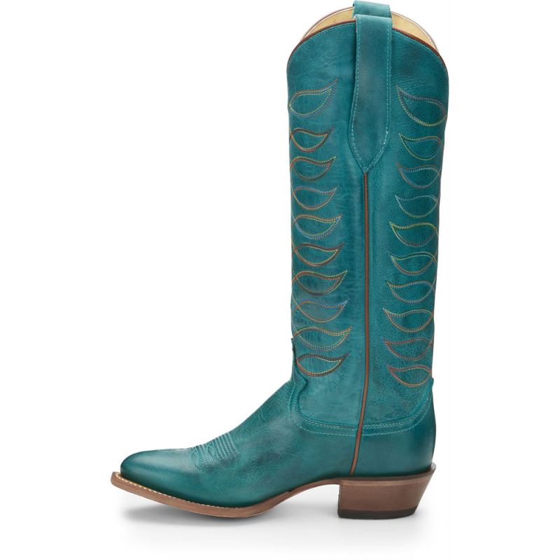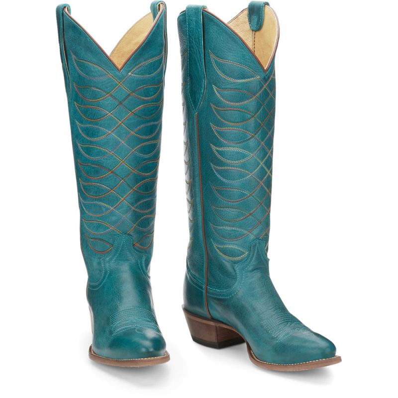 Inspired by some of our favorite Justin styles from the 1970s and 80s, this gorgeous 15" silhouette from our Vintage collection features stunning turquoise leathers embellished with vibrant, colorful embroidery. It's designed with a medium round toe, a cowgirl underslung heel and features our J-Flex Comfort System" insole for feel-good comfort and support.This beautiful throwback style celebrates our rich bootmaking heritage and will make a stunning foundation for any look.