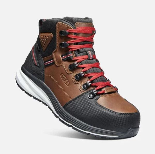 Combining the durability of a work boot with the athletic performance and lightweight feel of a work sneaker, this style keeps you moving all day. It features a full grain leather upper with TecTuff protection in high abrasion areas, KEEN.ReGEN midsole cushioning, offering 50% energy return with every step, and carbon fiber toes.