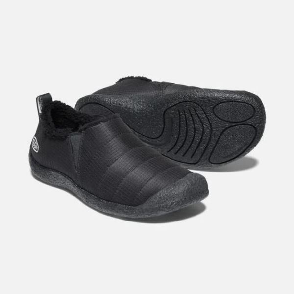 Quilted nylon is lined with plush microfleece for warmth without bulk. A memory foam footbed forms to your foot while cushioning every step, and the rubber outsole stands up to outdoor wear.