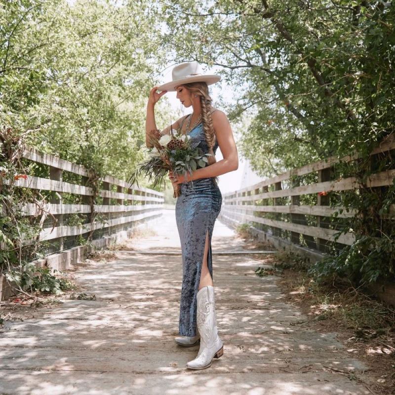 Featuring rim set crystal accents and tonal embroidery the Santorini is an upscale, elegant boot and makes an excellent wedding boot.