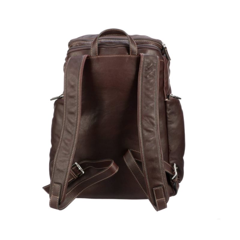 •Includes a large leather-trimmed sleeve in the main pocket.
