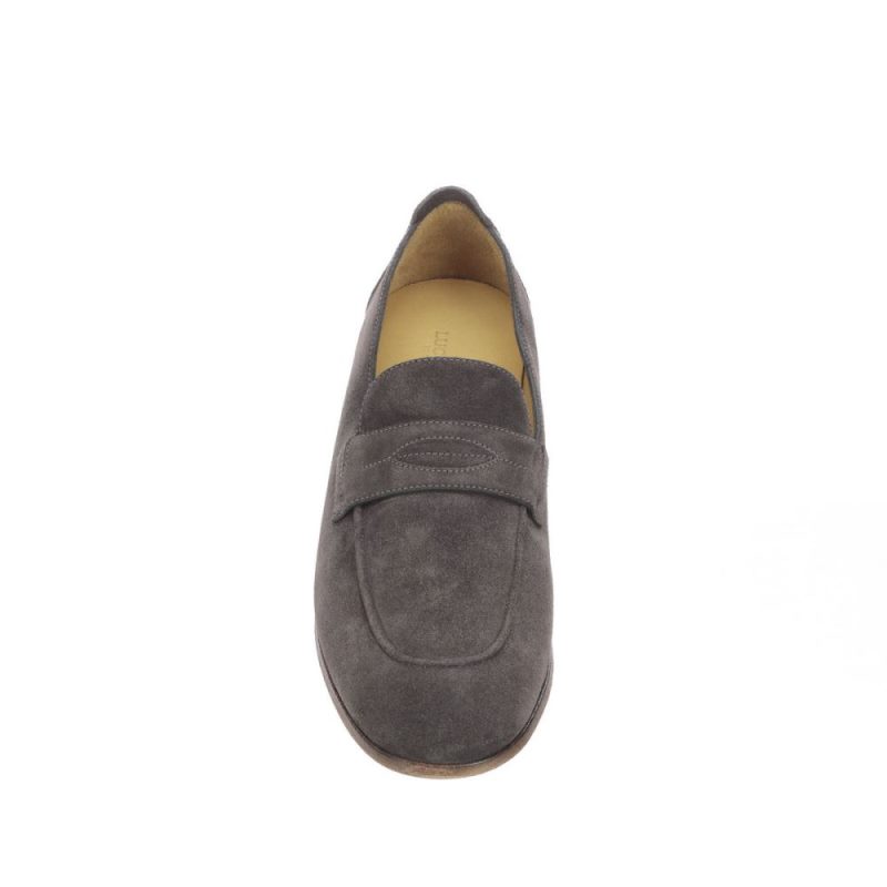 -Suede-Hand brushed-Hand burnished-Reverse construction-Calfskin lined-Handmade in Italy