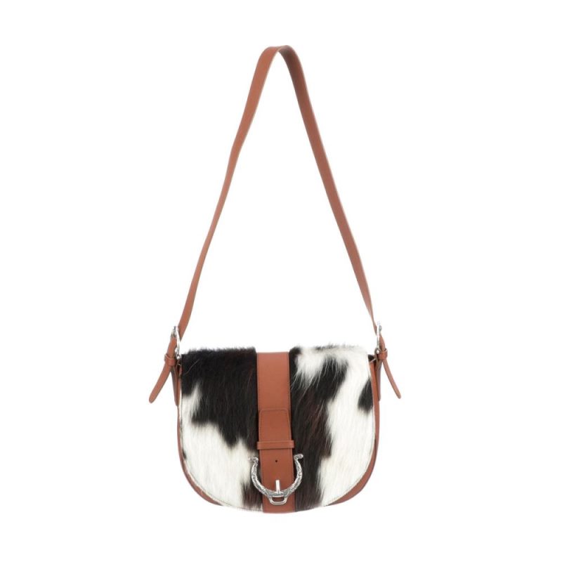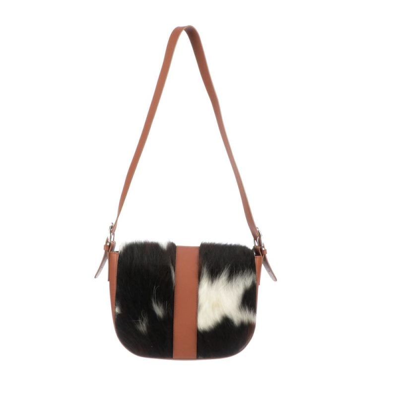 In dramatic black and white, the Medium Cowprint Crossbody Bag is handmade from hair-on cowhide. Trimmed in tan leather and accented with silver hardware, it's a Western-style tote sure to garner Texas-size compliments. It's got an adjustable strap and is roomy enough for your wallet, sunglasses, phone, and more.