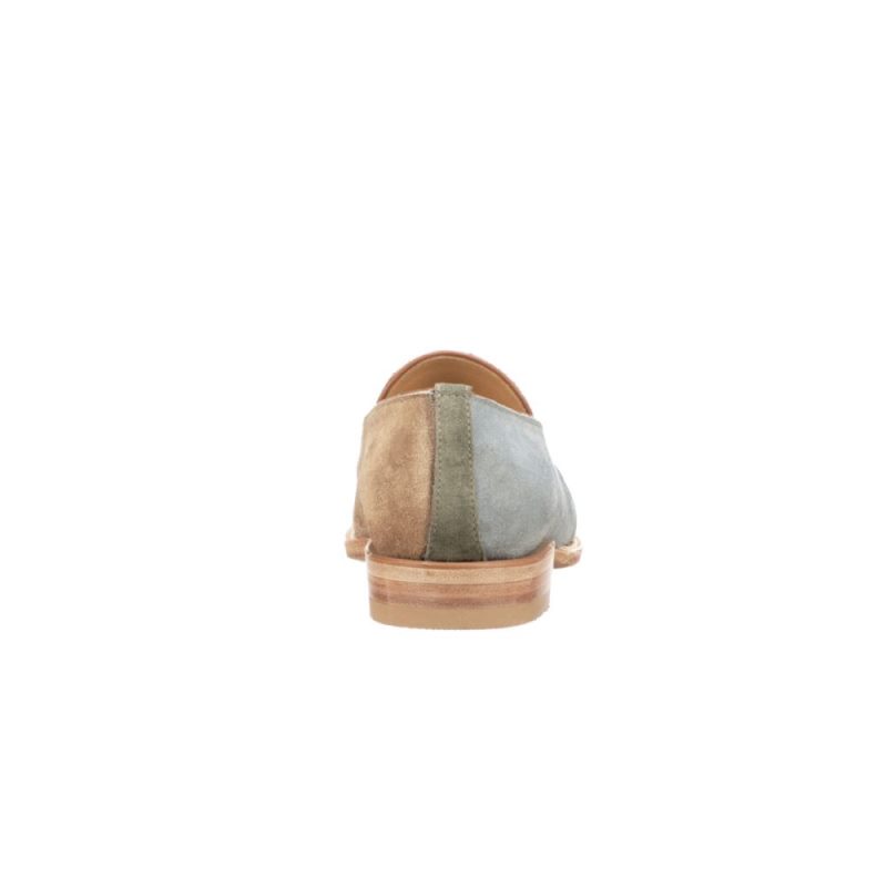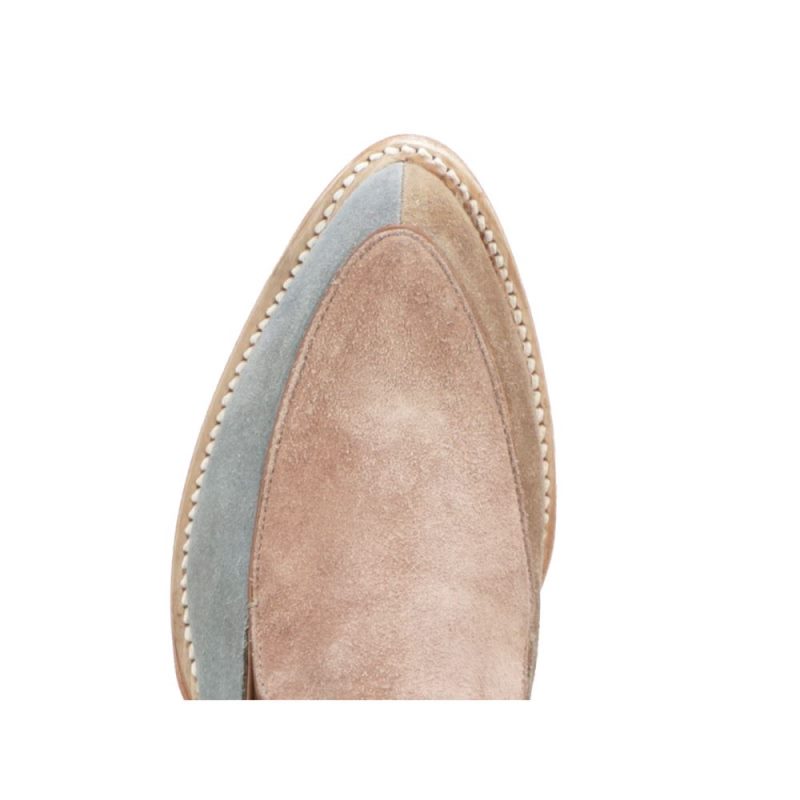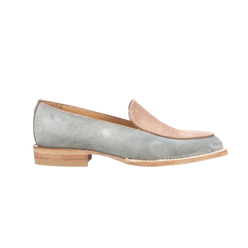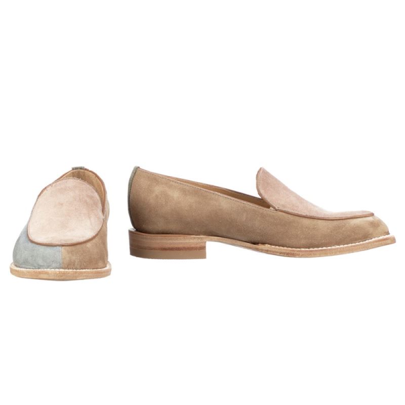 Crafted from blocks supple suede with colors of the Western painted desert, the Mimi loafer is an easy shoe to slip on no matter the season. Handmade in Texas.