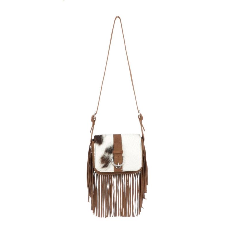 The Mini Suede Fringe Bag is handmade from suede and hair-on cowhide. With an adjustable strap, Western-style silver hardware, and playful fringe, it's a purse with loads of personality. A magnetic snap keeps belongings secure, whether you're at the rodeo or out on the town.