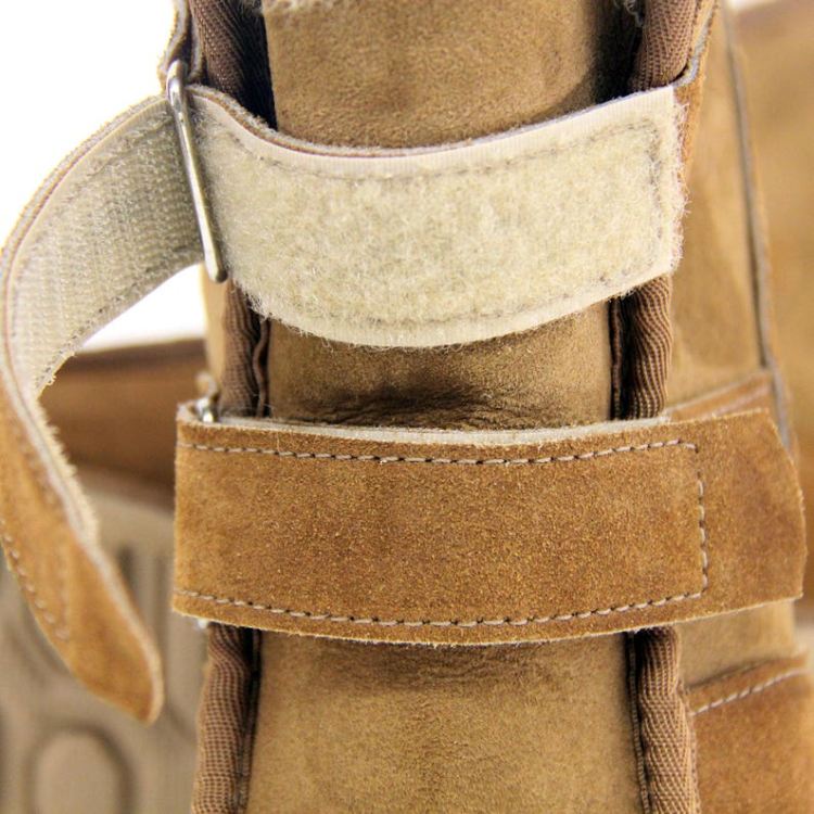 Features eco-friendly leather with a double-sided print and rounded toe construction.
