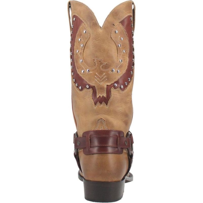 The #War Eagle showcases a soaring studded eagle front and back. The #War Eagle is made for the stage, just the right amount of show and attitude. O-ring harness straps has metal studs. Fashion square toe and western influenced design.