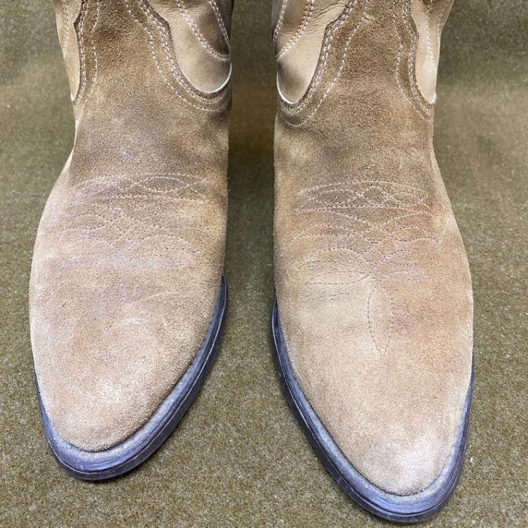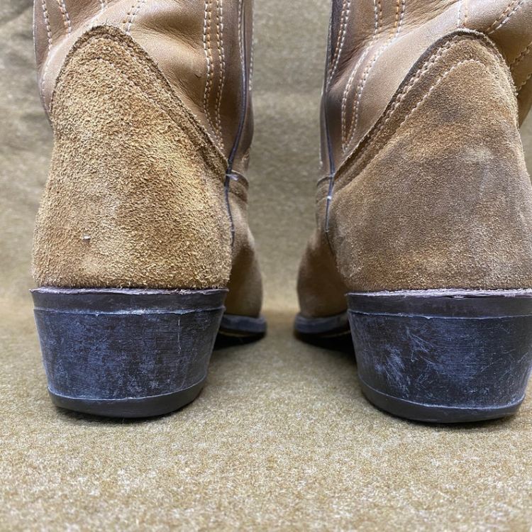 Good vintage condition. Some sole and heel wear. Leather patina is worn to natural leather color is some spots in toe and shaft. All wear is from age and adds character to these chic boots.