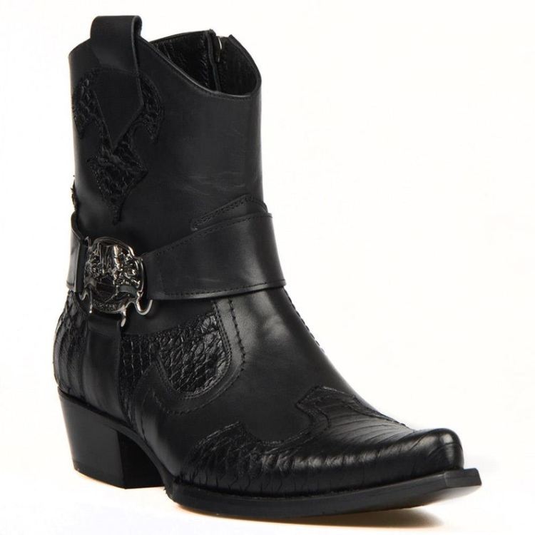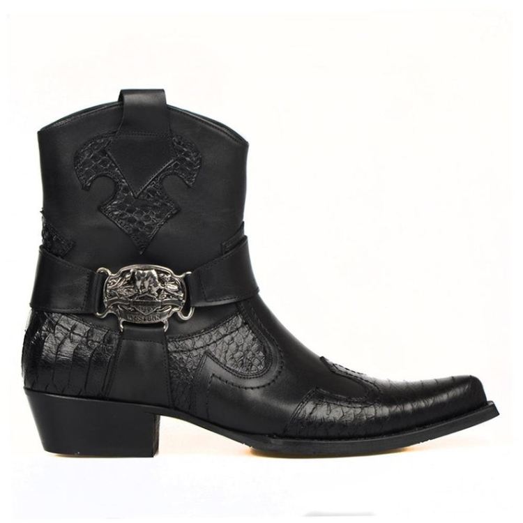 - Men's Footcourt Black Premium Genuine Leather Cowboy Boots Mid-calf | Save More