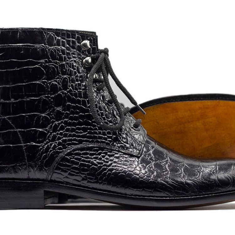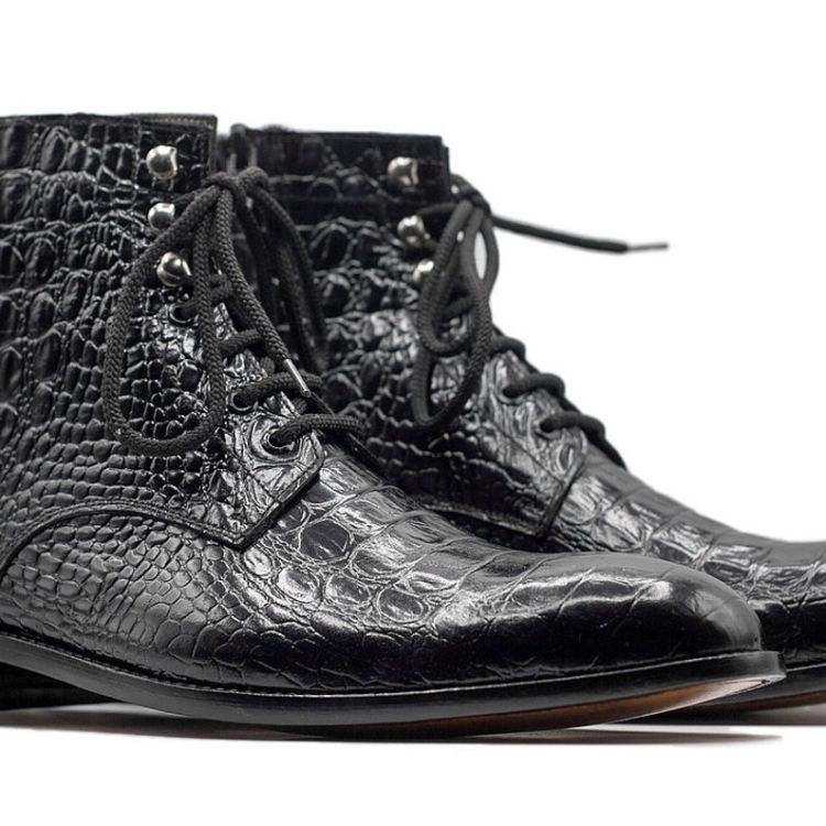 - Men's Handmade Black Alligator Texture Leather Bootss | Save More