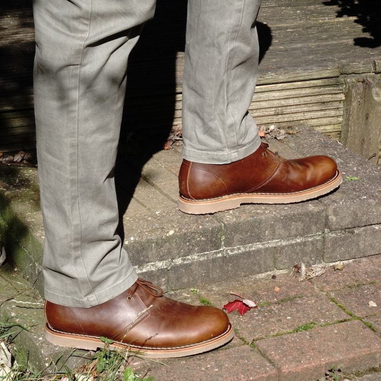 The "chukka boot" refers to a form of desert boots originally worn by British soldiers in the Western Desert Campaign of World War II.