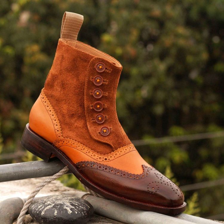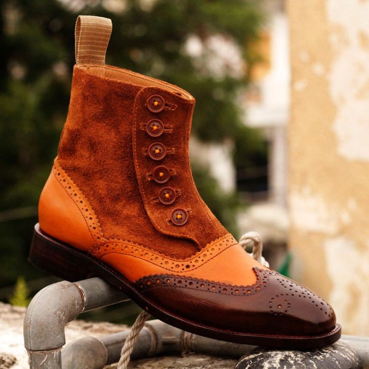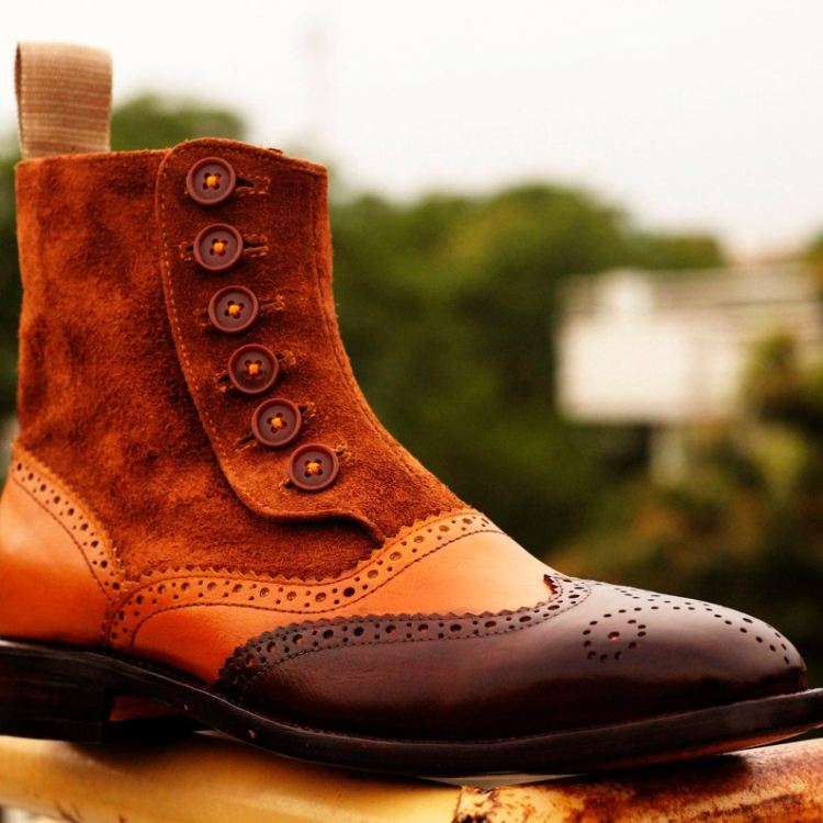 - Men's New Purely Handmade Black Leather & Grey Suede Button Top | Save More