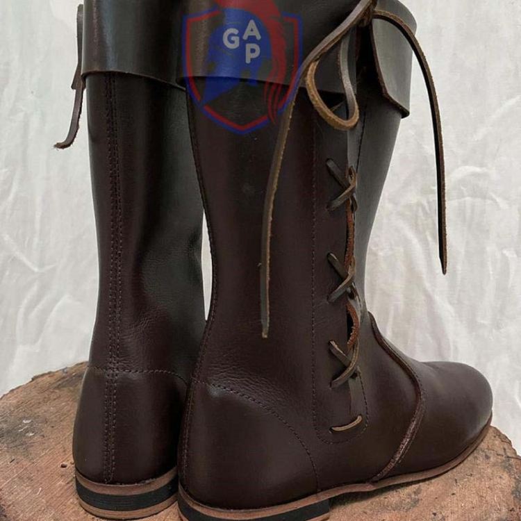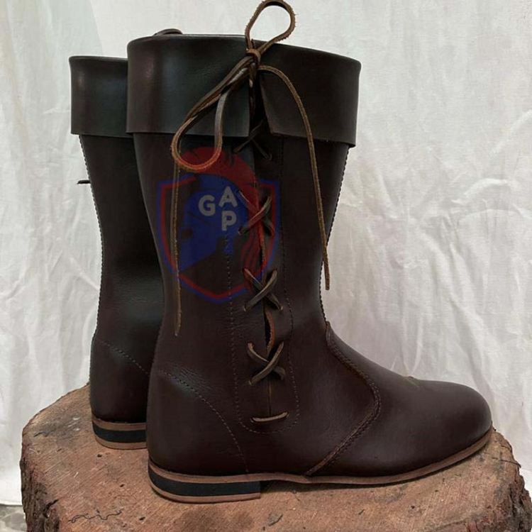 Medieval Leather Boots are available in Brown and Black color. Our lace up knee high boots for men runs true to
