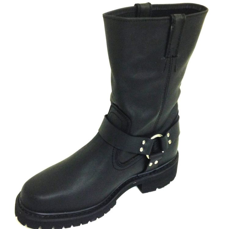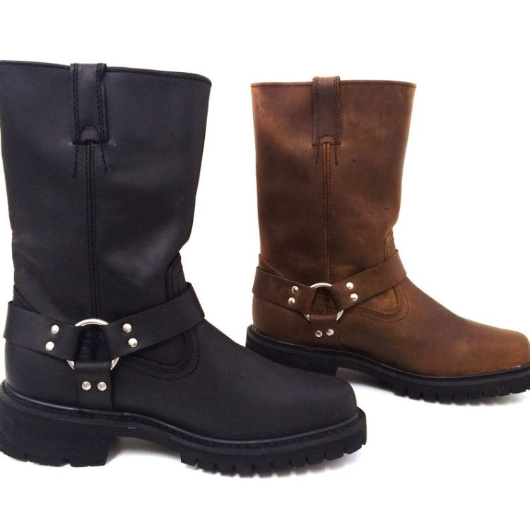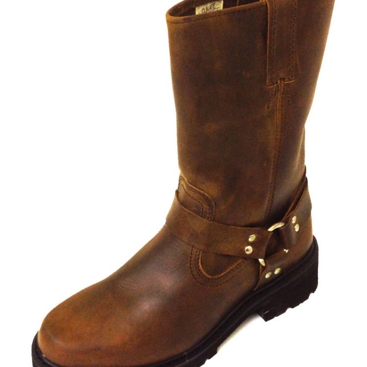 10" Black Oil Full Grain Leather / Brown Crazy Horse Leather Upper, Cushion Insole, O-Ring Ankle Harness Strap, Natural Lug Oil Resistant Outsole, Goodyear Welt Construction