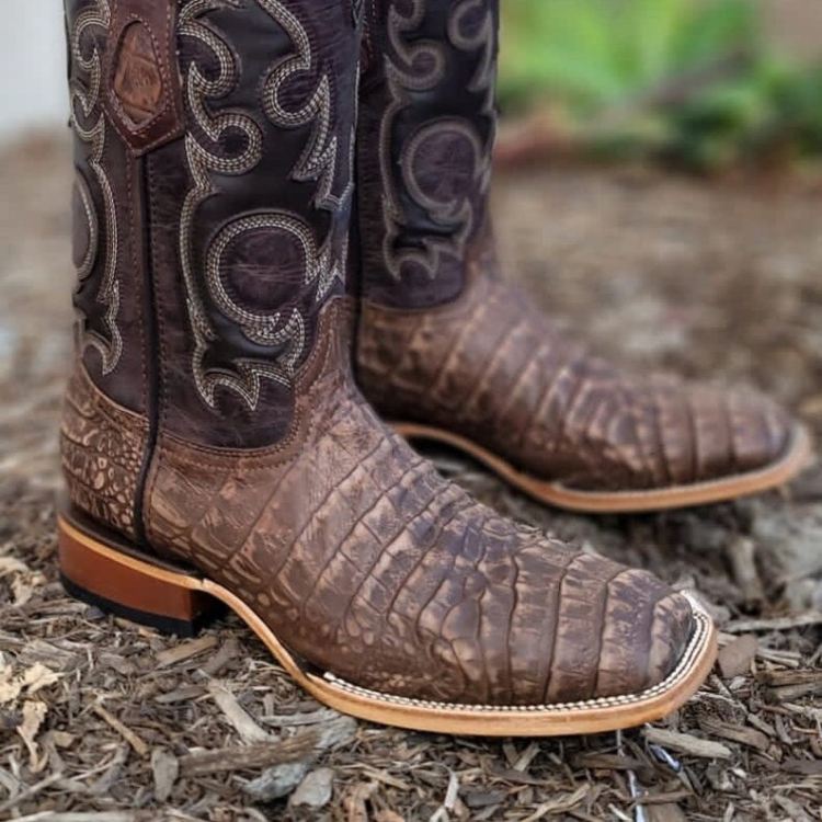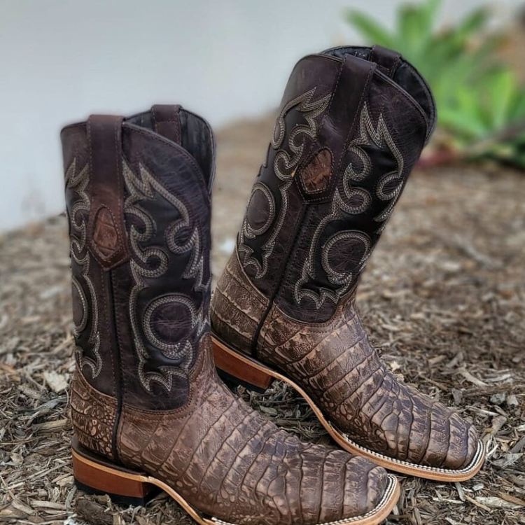 MENS Orix faux CAIMAN belly print LEATHER Cowboy wide square toe boots botas
