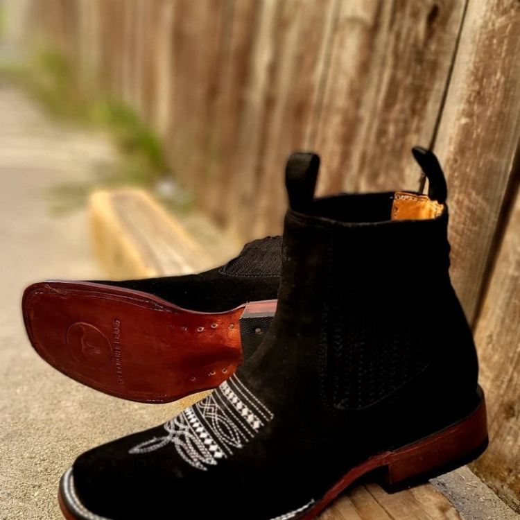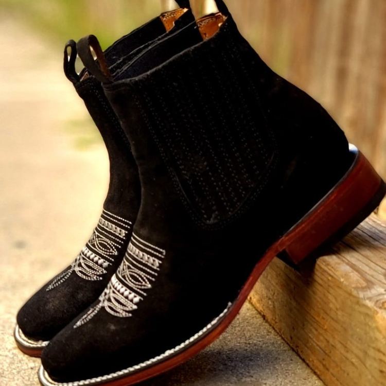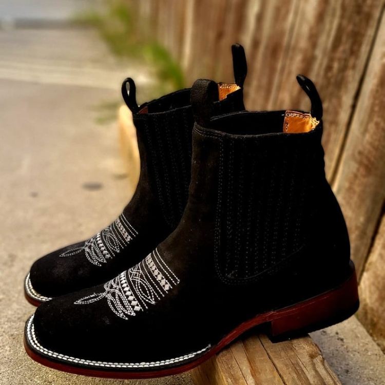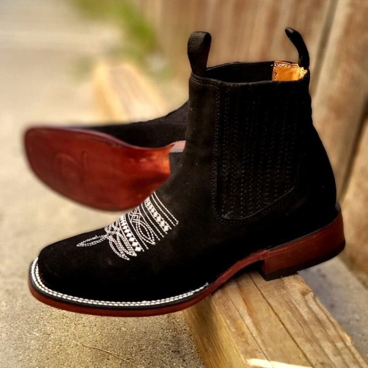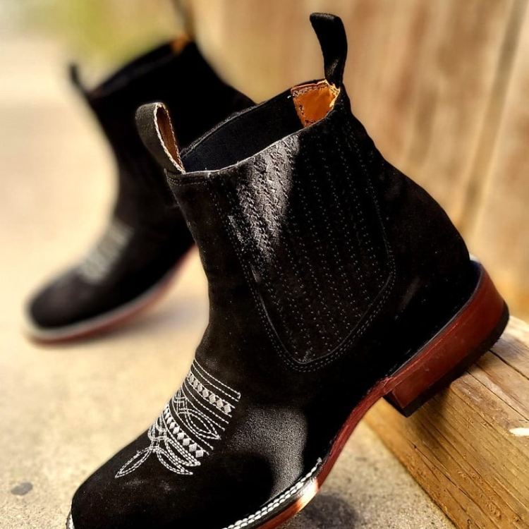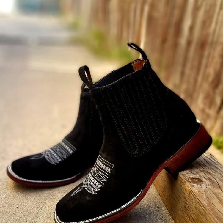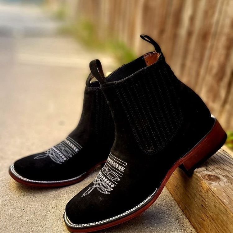- Men's Footcourt Black Premium Genuine Leather Cowboy Boots Mid-calf | Save More