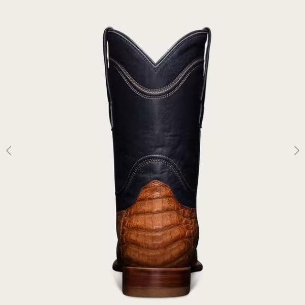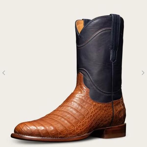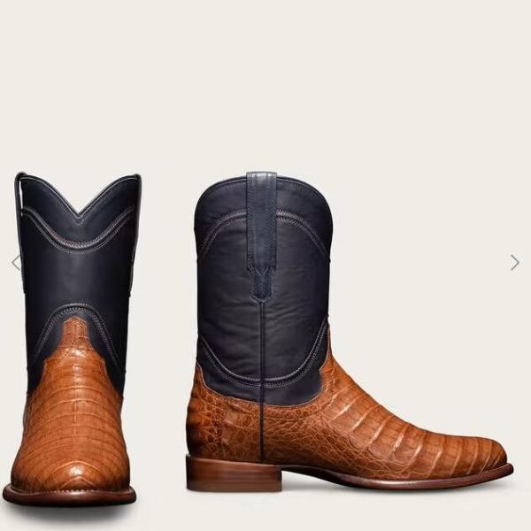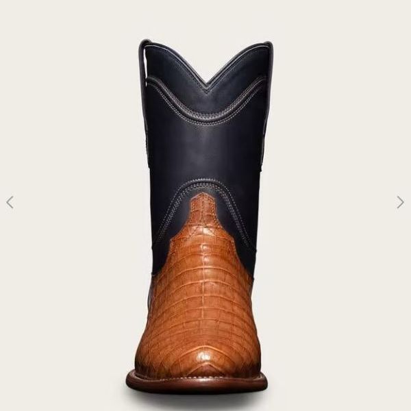 The Cole is an exotic roper boot, featuring caiman belly hand-lasted in our classic roper profile. A shorter heel and simple, elegant calfskin shaft showcase this supple exotic leather in a classic profile.