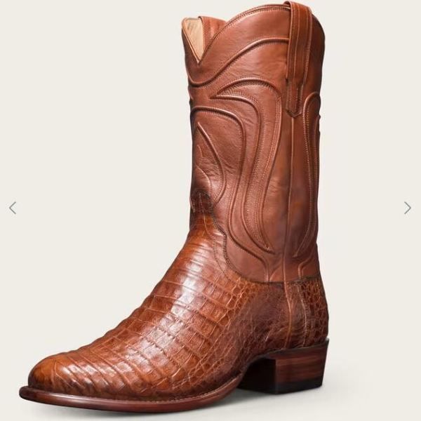 The Dillon is a striking exotic cowboy boot, featuring caiman belly hand-lasted in a timeless cowboy profile. An angled heel and signature Tecovas hand-corded calfskin shaft complete the elegant exotic profile.