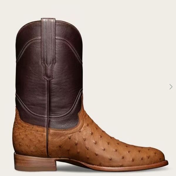 The Duke is an exotic roper boot, featuring full-quill ostrich leather hand-lasted in our classic roper profile. A shorter heel and simple, elegant calfskin shaft showcase the beautiful exotic leather in a classic profile.